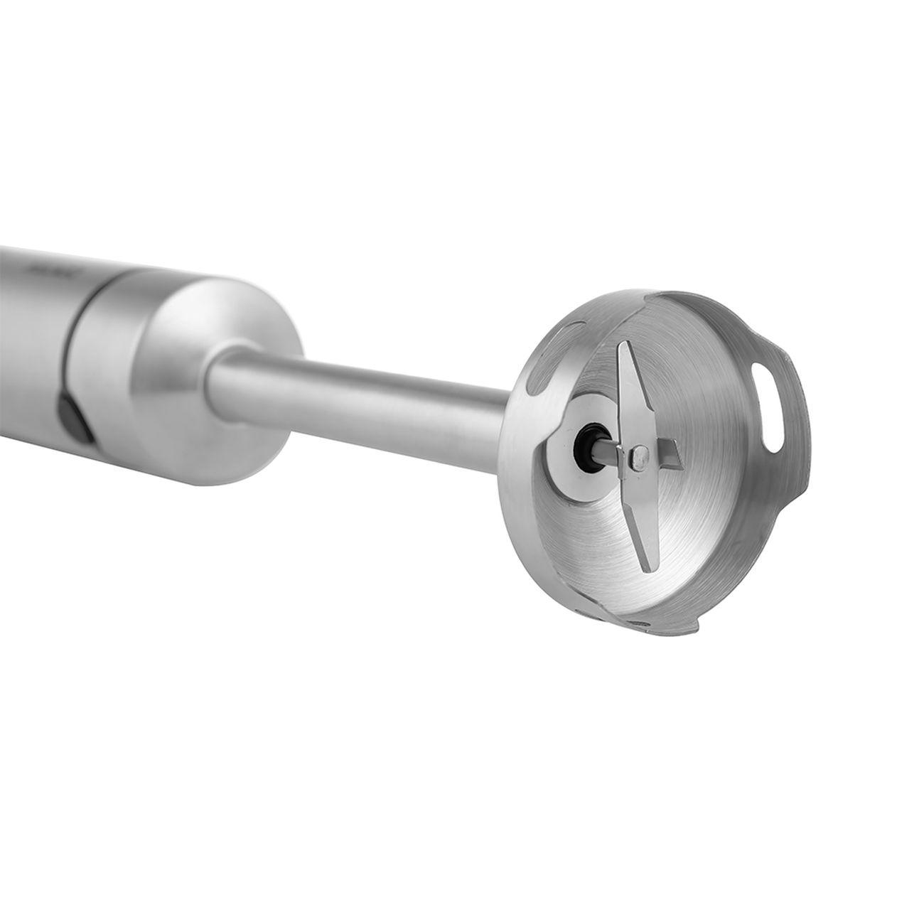 Насадки удобно снимаются с корпуса. Погружная часть из нержавеющей стали контактирует с пищей, не выделяя токсичных веществ. Эргономичная рукоятка прибора оптимально ложится в руку.