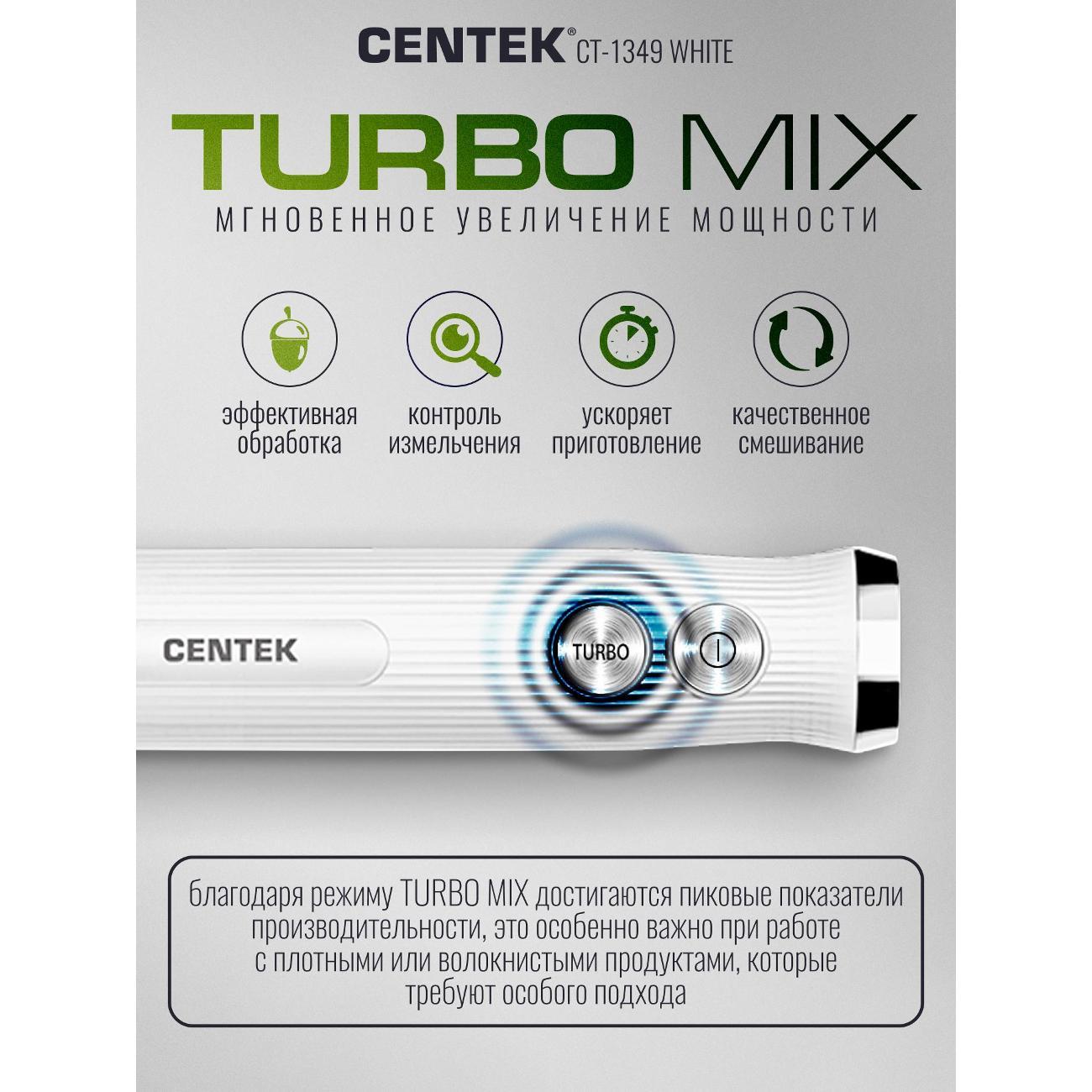 Вы можете купить Погружной блендер Centek CT-1349 белый в магазинах М.Видео по доступной цене. Погружной блендер Centek CT-1349 белый: подробное описание, фото и отзывы реальных покупателей, характеристики, возможность скачать инструкции и подобрать аксессуары.