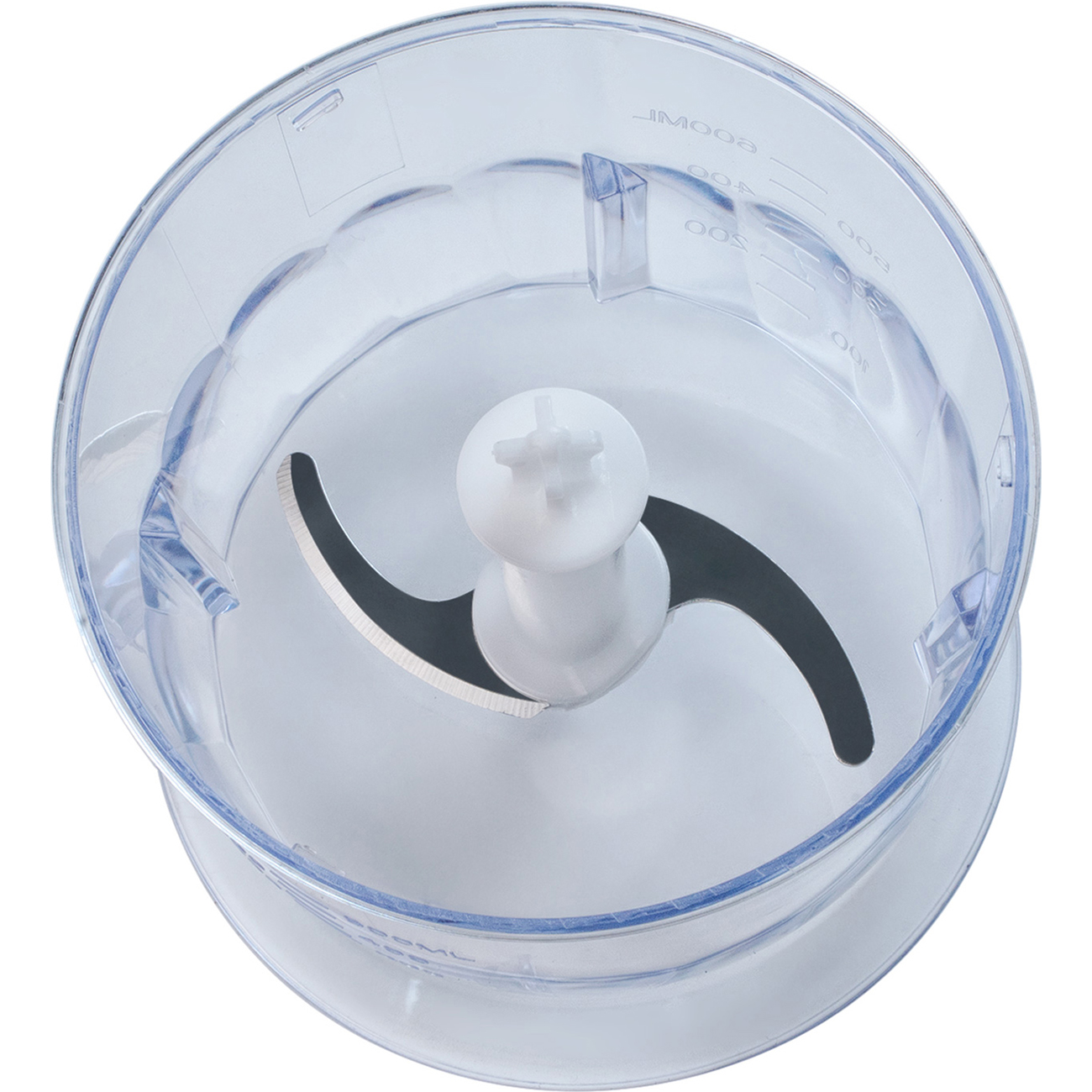 Измельчитель дополнен чашей, объем которой равен 600 мл. Насадка-венчик позволяет взбить соус, крем и другую продукцию похожей консистенции. Также в комплект входит мерный стакан на 500 л. В наборе есть книга рецептов, способная разнообразить ежедневный рацион питания. Для подключения к сети используется шнур длиной 1,02 м. Размеры блендера — 20,5х23х14,5 см, вес — 1,485 кг.