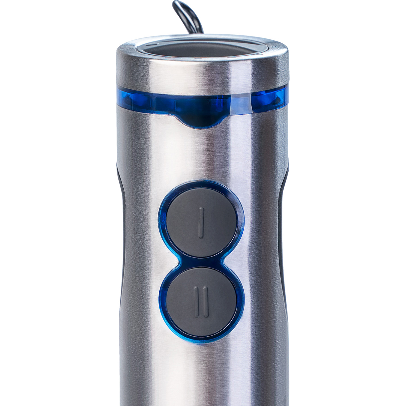 Погружной блендер Galaxy GL2128 — устройство мощностью 800 Вт, оснащенное семью скоростями. Корпус изготовлен из нержавеющей стали. Управление механическое. Есть возможность плавной регулировки скорость в зависимости от плотности продуктов. Предусмотрено два режима работы, включая турборежим. Последний позволяет прибору работать на максимально возможных оборотах в течение небольшого отрезка времени.
