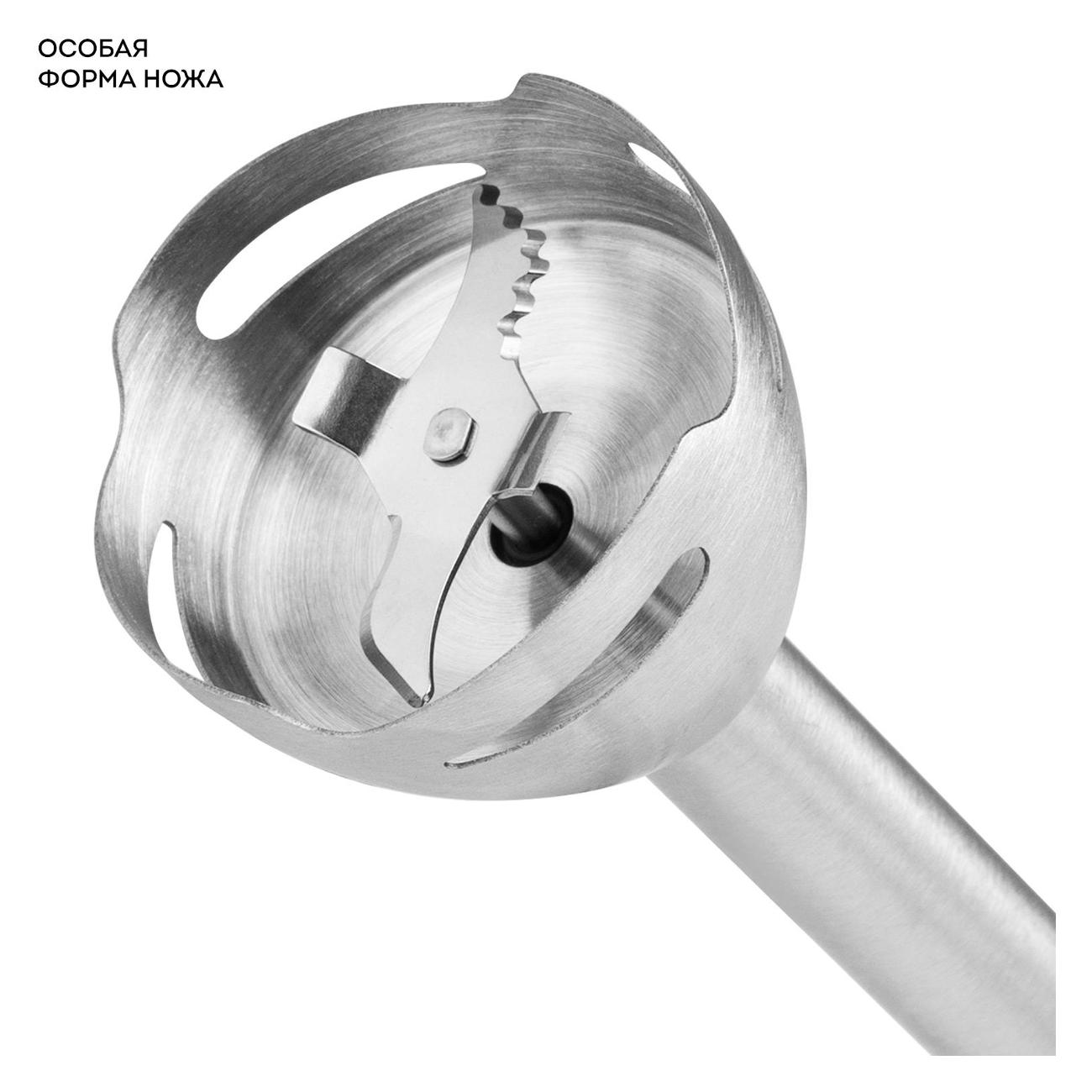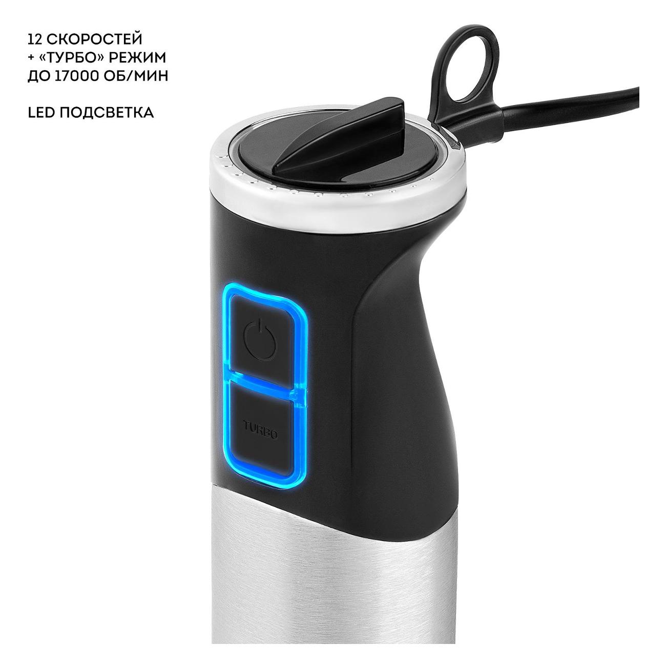 Погружной блендер Galaxy Line GL2135 с LED-подсветкой и особой формой ножа изготовлен таким образом, что при работе минимизируются брызги. Потребляемая мощность — 1350 Вт, подсоединение к сети происходит через кабель длиной 1,18 м. Управление 12 скоростями и турборежимом осуществляется с помощью кнопки. Всего присутствуют три насадки. Корпус изготовлен из пластика, погружная часть и лезвие — из нержавеющей стали. В комплектацию входит мерный стакан емкостью 600 мл. Масса — 1,3 кг. Цвет — серебристо-черный. Габариты: 24х22х13 см.