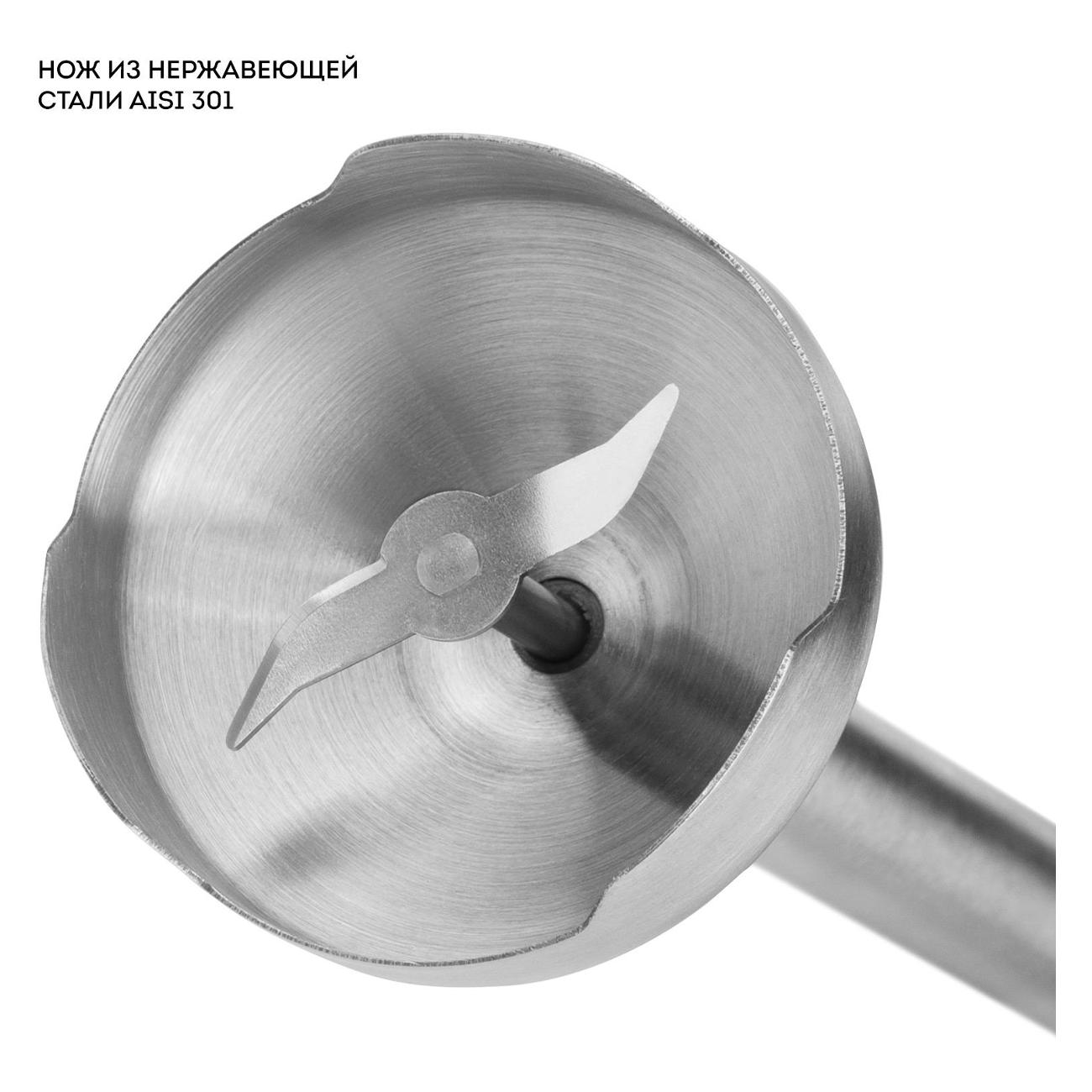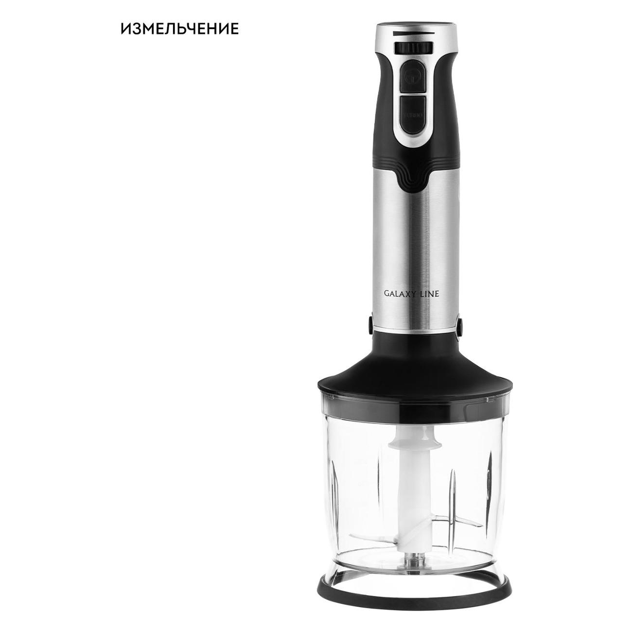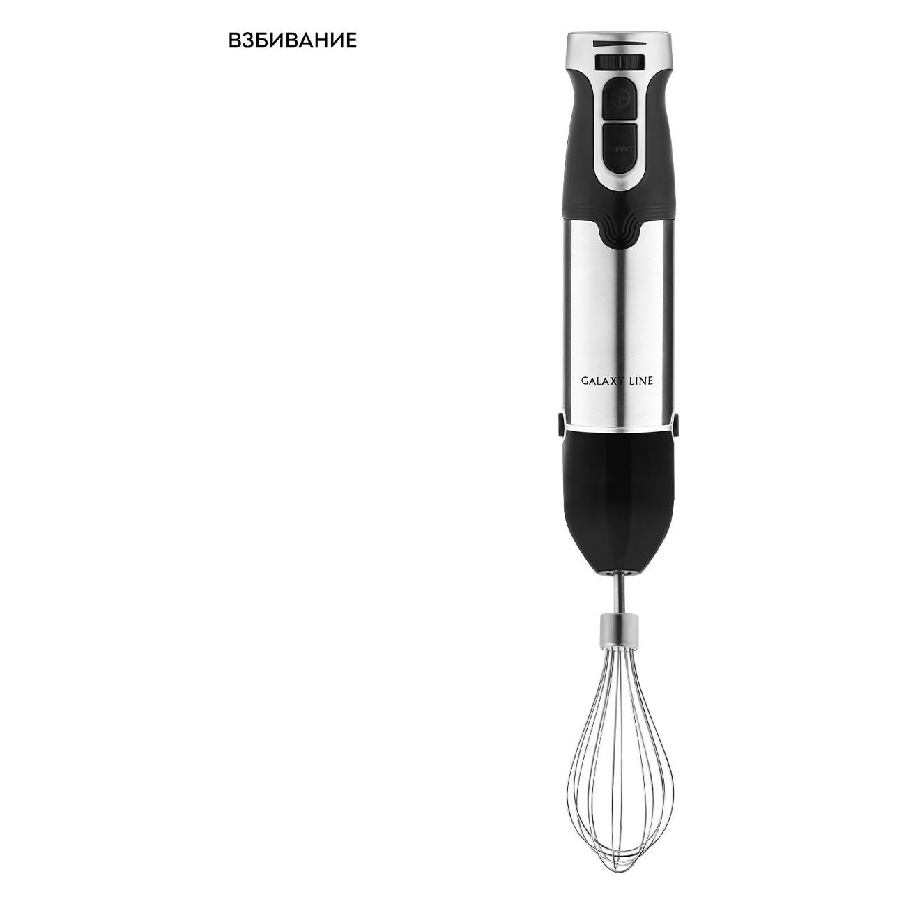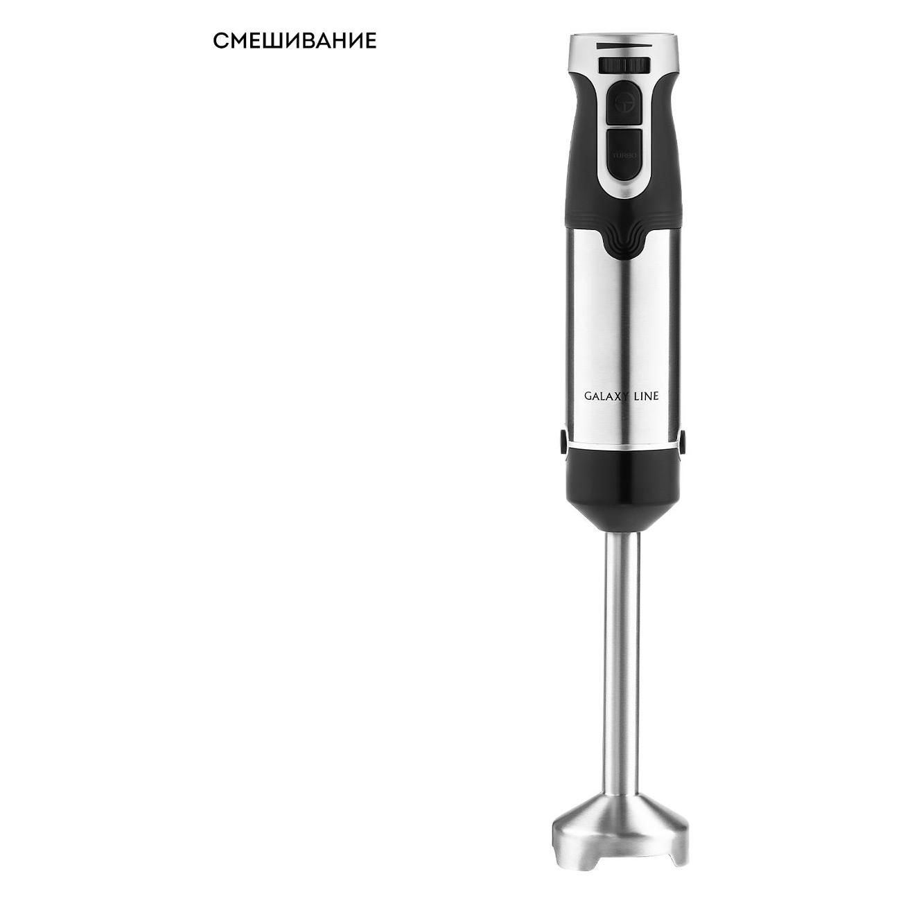Погружной блендер Galaxy Line GL2142 оборудован тремя легко сменяющимися насадками и одним режимом работы. Медный DC двигатель устройства работает с мощностью 1350 Вт. У устройства 12 скоростей, которые переключаются кнопками. Предусмотрен турборежим. Мерный пластиковый стакан представлен в объеме 700 мл, пластиковая чаша — 500 мл. Лезвие и погружная часть выполнены из нержавеющей стали. Материал корпуса — EVA/ пластик.