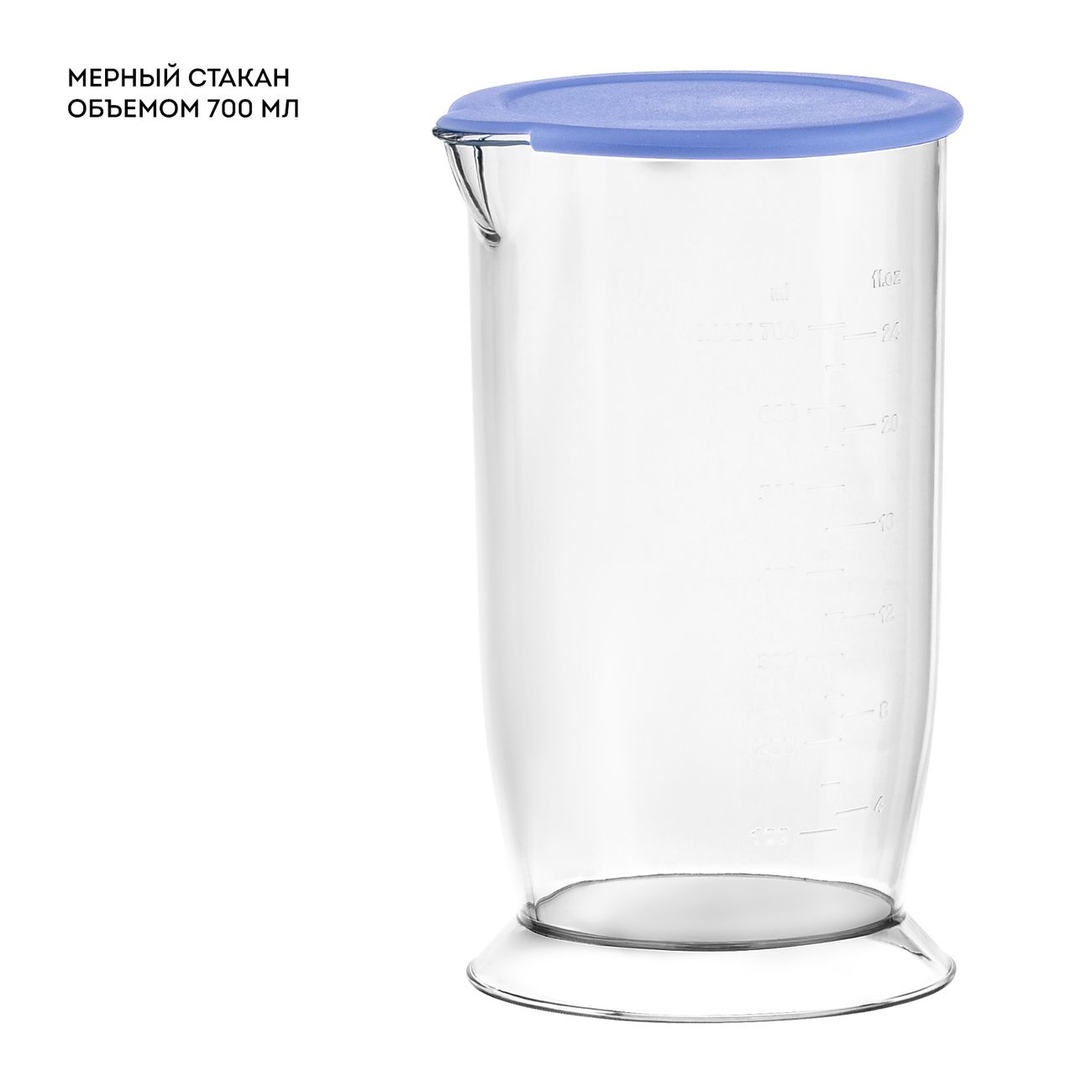 В комплекте идут насадка-венчик и насадка-блендер из нержавеющей стали, которые легко сменяются в зависимости от потребности. Пластиковый кувшин оснащен защитой от разбрызгивания и выполнен в объеме 700 мл. Габаритные размеры — 25х18х13 см. Вес равен 1 кг. Книга рецептов, поставляющаяся в комплекте, добавит новых идей для готовки.