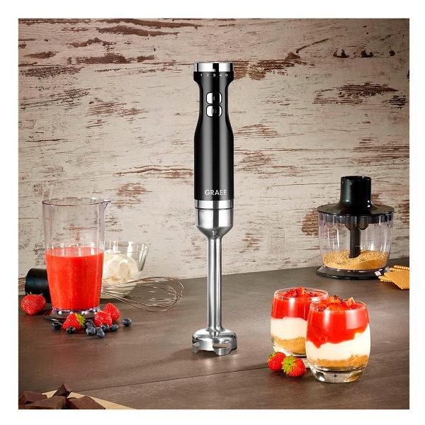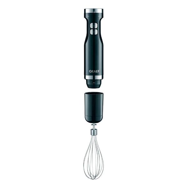 Погружной блендер Graef HB 502 Schwarz черного цвета обладает габаритами 40,2х6,5х5,5 см. Вес устройства — 1,47 кг. Лезвия изготавливаются из нержавеющей стали, кувшин — из пластика. Прибор адаптирован для мойки в посудомоечной машине. В комплекте поставляются три насадки. Присутствуют два режима работы. У модели механический тип управления. Прибор работает на двух скоростях. Уровень потребляемой мощности не превышает 800 Вт. Длина встроенного сетевого кабеля — 90 см. Встроена система защиты от перегрева.