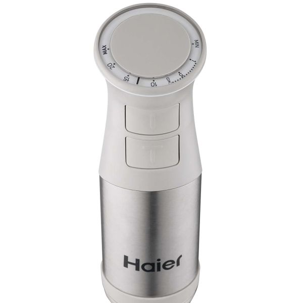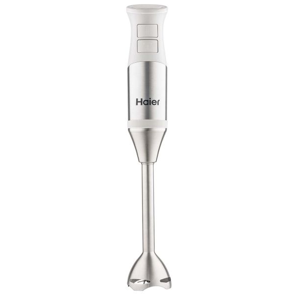 Погружной блендер Haier HB-501, серый обладает мощностью 1200 Вт и способен перерабатывать даже твердые продукты, например, колоть лед. В комплекте поставляются погружная насадка, венчик для взбивания и измельчитель объемом 1 л. Особая конструкция чаши с двойным дном позволяет без труда извлекать готовые ингредиенты. Кроме того, прилагается мерный стакан объемом 0,9 л.