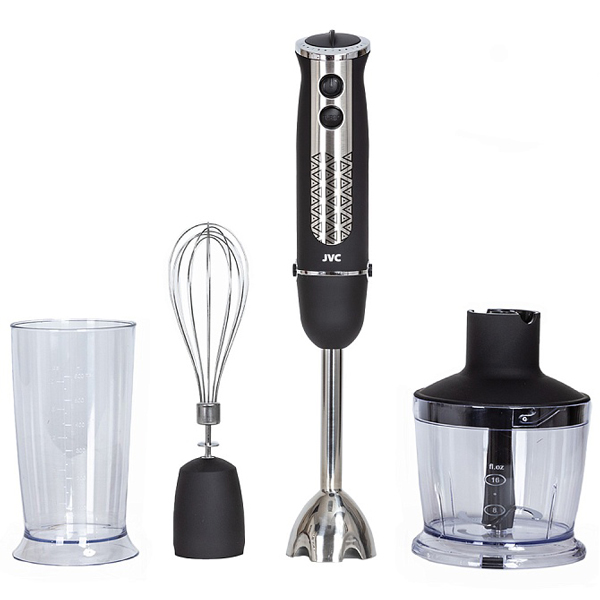 Погружной блендер JVC JK-HB5035 выполнен в корпусе из пластика и металла, оформлен в черном и серебристом цветах. Погружная часть и лезвия сделаны из нержавеющей стали. Устройство работает в трех режимах на пяти скоростях. Управление обеспечивают механические кнопки. В этой модели реализована функция плавного запуска мотора. Потребляемая мощность прибора — 1200 Вт. В комплекте есть насадка-блендер, стакан (600 мл), чаша-измельчитель (500 мл), венчик. Габариты конструкции — 24,8х13,4х23,5 см, вес — 1,5 кг.