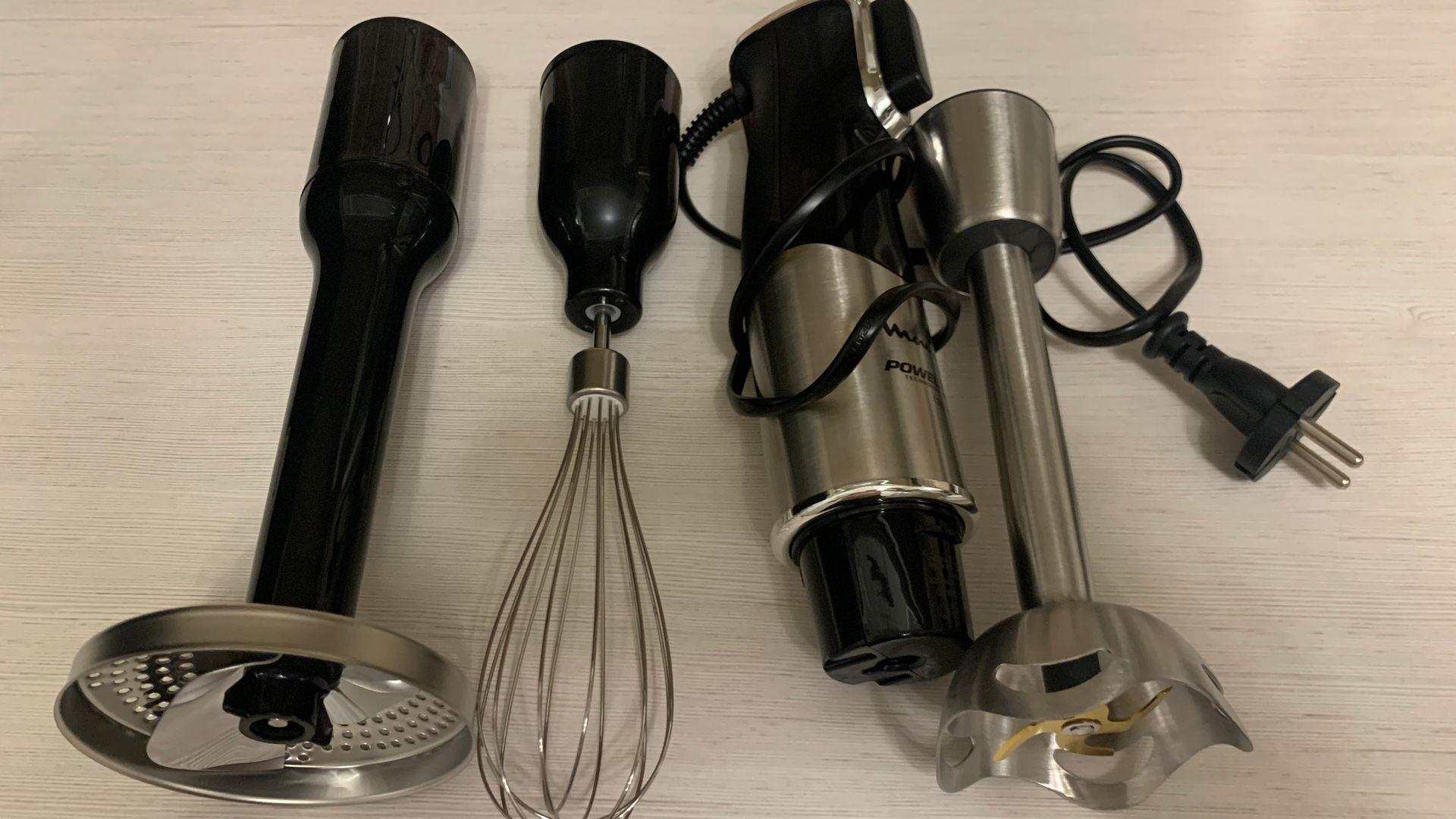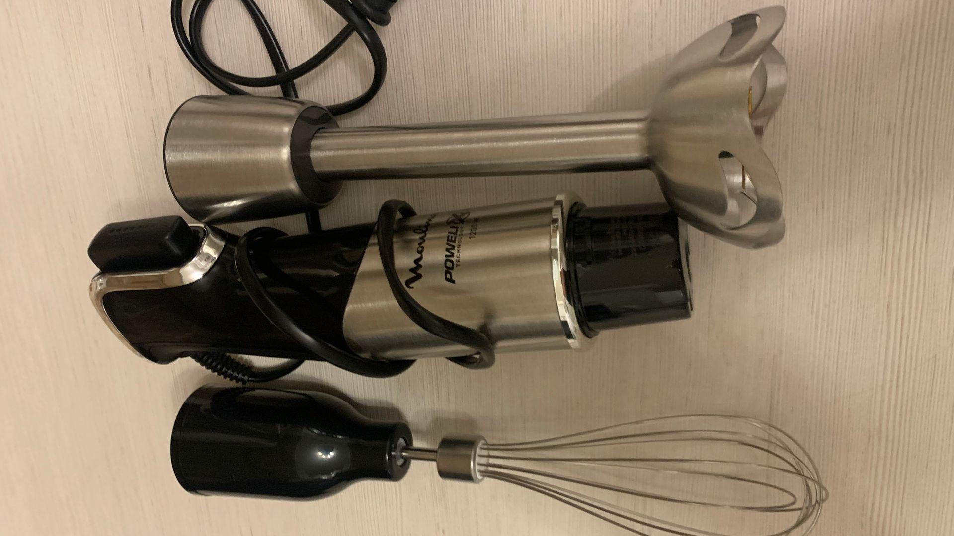 Moulinex InfinyForce Pro DD95KD10 погружной универсальный блендер мощный мотор 1200 ват, регулировка скорости на кнопке одним нажатием в процессе использования очень удобно, в комплекте есть насадка для приготовления пюре которая облегчает в разы процесс приготовления, насадка для приготовления соусов в домашних условиях, венчик для взбивания и насадка измельчитель с чашей 0,5 литра. Двигатель блендера работает тихо это очень удобно, когда используете прибор рано утром или поздно вечером никому не мешает. Сделано все качественно материал блендера и насадок нержавеющая сталь и пластик ручка с прорезиненными вставками. Блендер облегчает и ускорят процессы по приготовлению блюд.