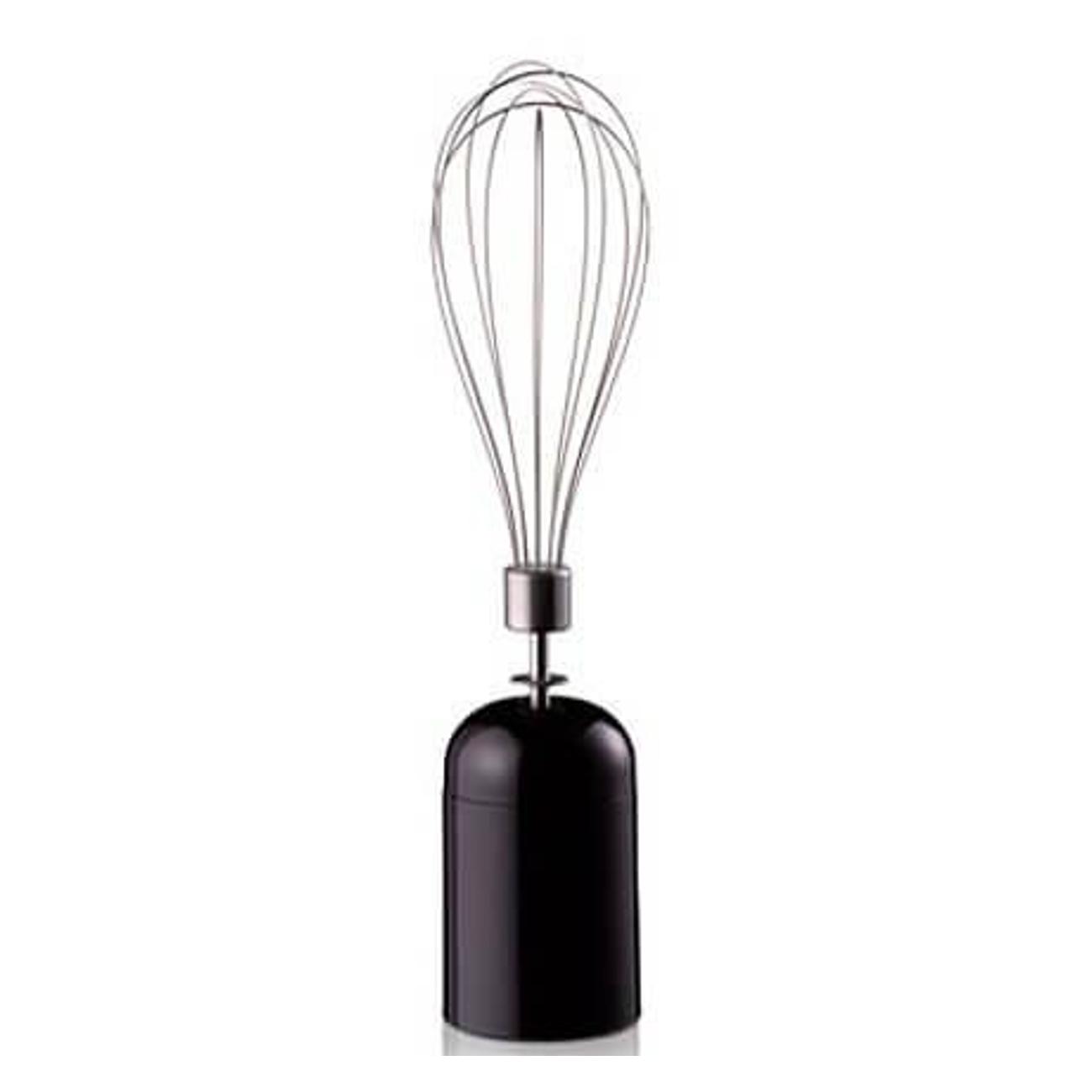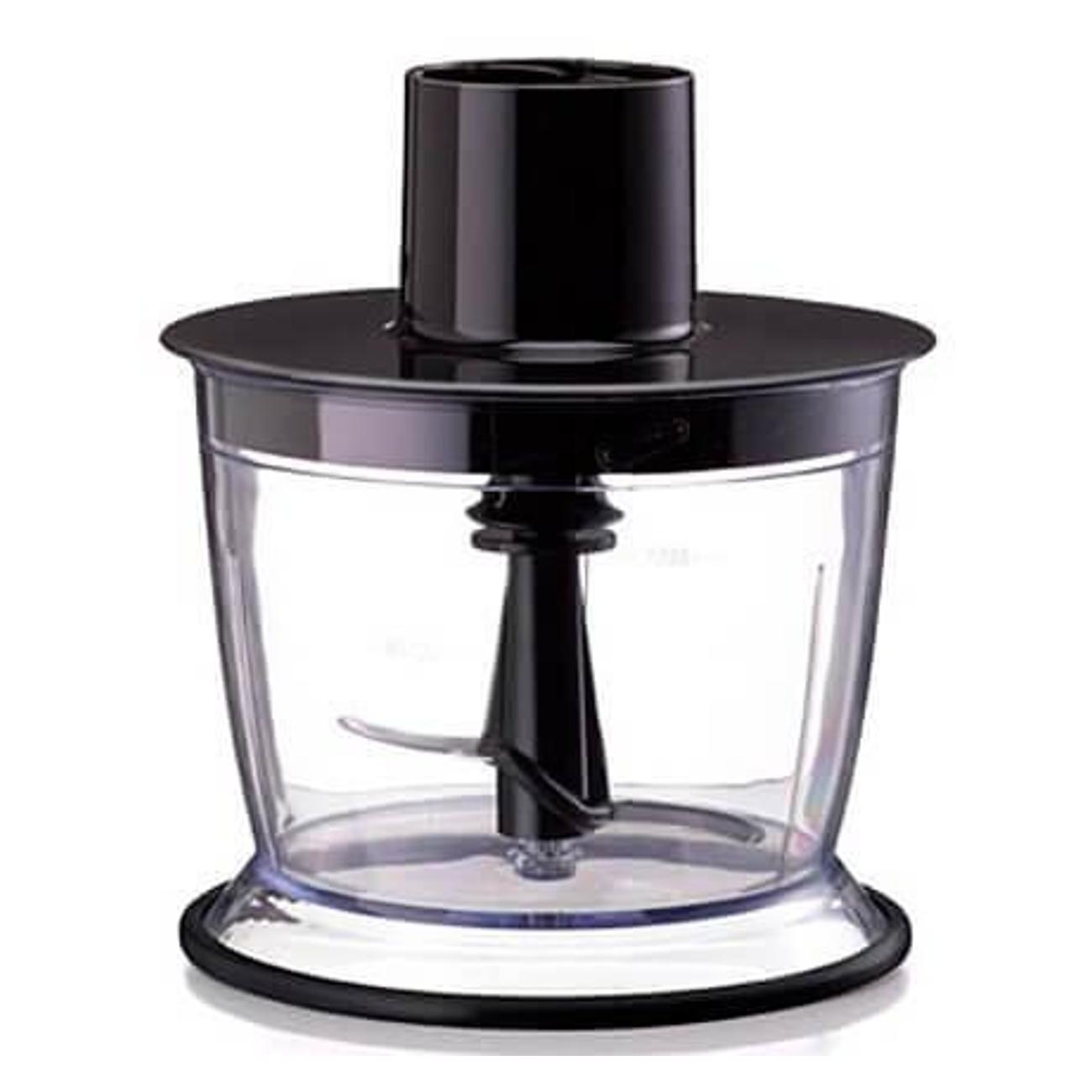 Рукоять снабжена прорезиненной накладкой, предотвращающей выскальзывания прибора даже при работе на большой скорости. Мощность двигателя — 600 Вт. Управление обеспечивает ползунковый переключатель, плавно запускающий мотор и меняющий режимы. Нога, стакан и чаша легко очищаются от загрязнений под струей воды или в посудомоечной машине. Размеры блендера — 6,4х7,0х39,7 см, вес — 1 кг.