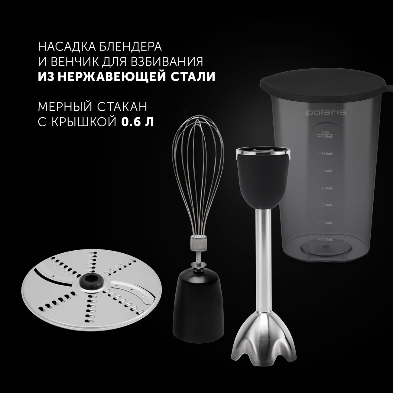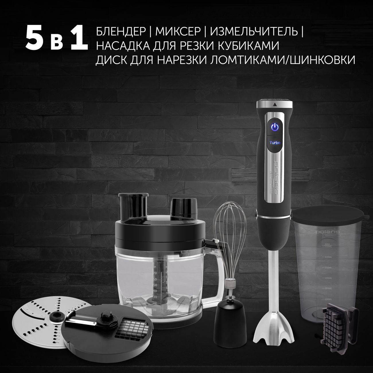 Погружной блендер Polaris PHB 1590AL Cube Black сделан из нержавеющей стали и ударопрочного пластика. Устройство создано для измельчения, смешивания, взбивания, нарезки кубиками и шинковки.