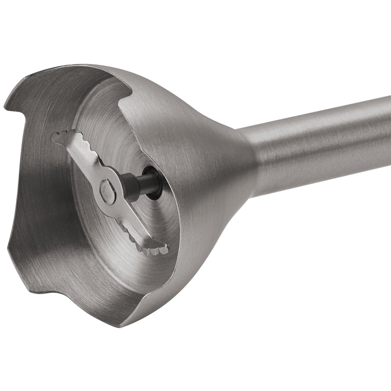 Встроенный мотор обеспечивает мощность 1500 Вт и оснащен защитой от перегрева. Механическое управление со светодиодной подсветкой позволяет регулировать 15 скоростей, включая турборежим. Комплектация модели дополнена двумя насадками (блендер и миксер), а также 0,7-литровым мерным стаканом и чашей для взбивания объемом 0,5 л.
