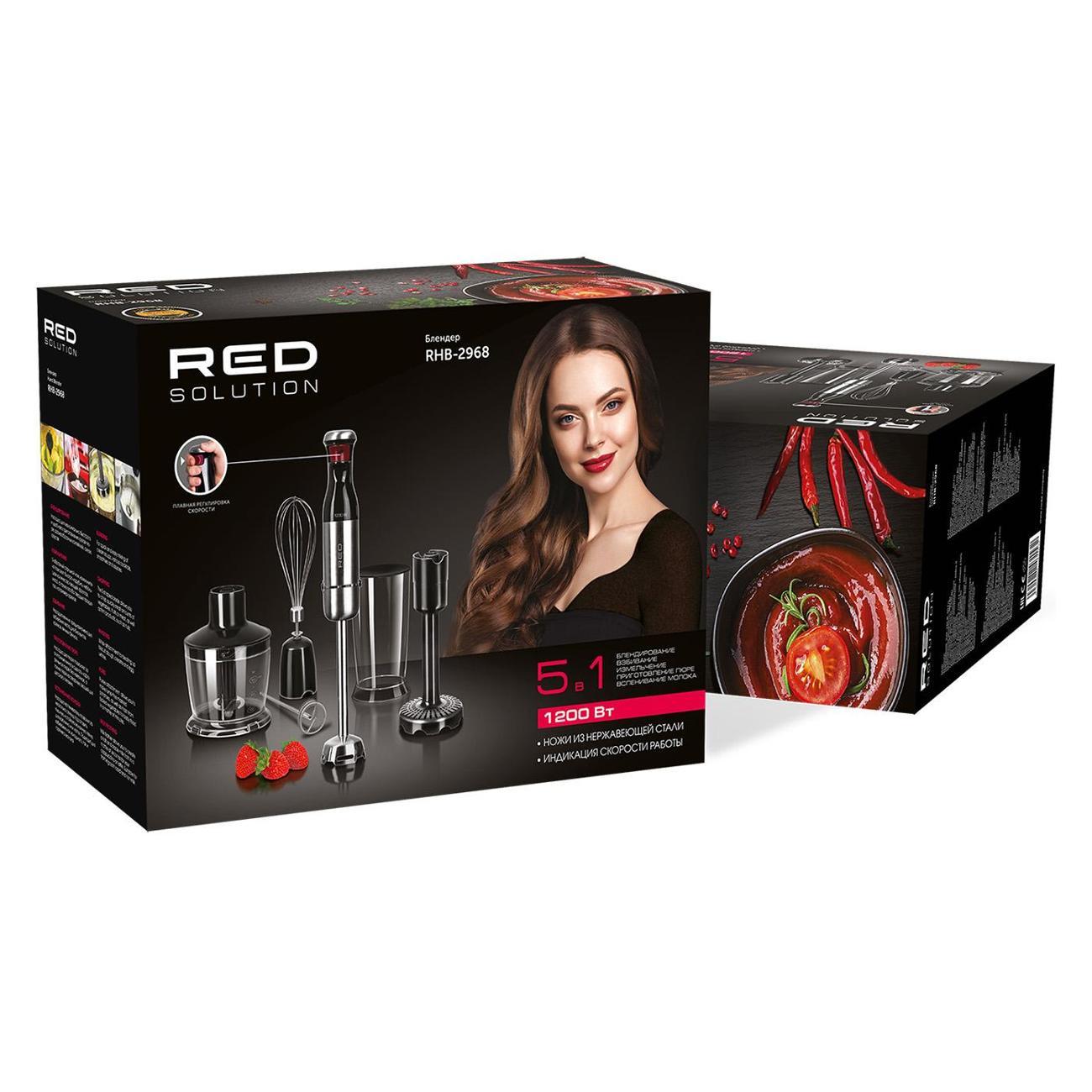 Погружной блендер RED solution RHB-2968 с пятью сменными насадками заменяет пять приборов: миксер, блендер, измельчитель, вспениватель и прибор для приготовления пюре.