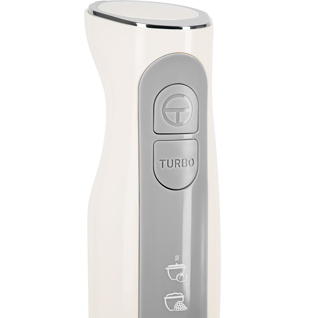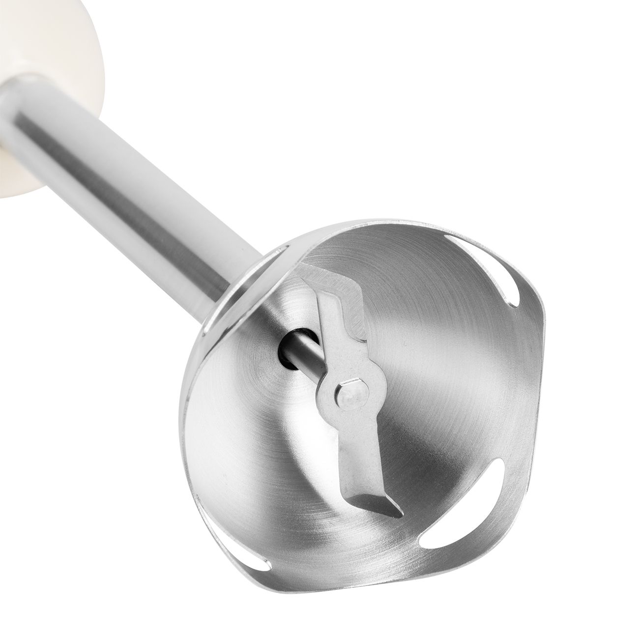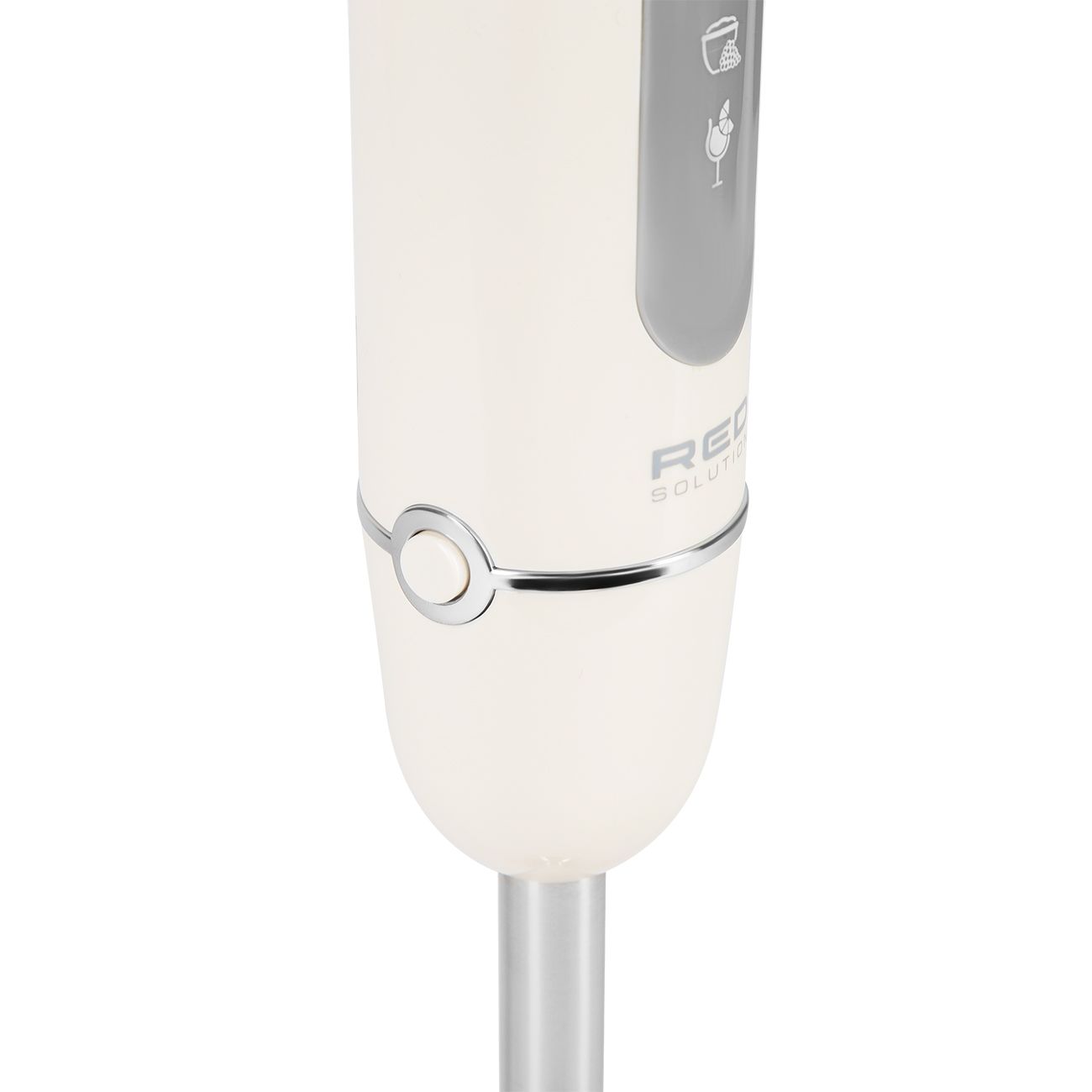 Погружной блендер Red Solution RHB-2994 бежевого цвета обладает габаритами 39,6х6х5,7 см. Масса модели — 1,75 кг. В комплекте поставляются S-образный нож, также три насадки. Емкость мерного стакана составляет 0,6 л. Лезвие выполнено из нержавеющей стали, корпус — из пластика. Устройство может работать в турборежиме. Уровень мощности не превышает 1,3 кВт.