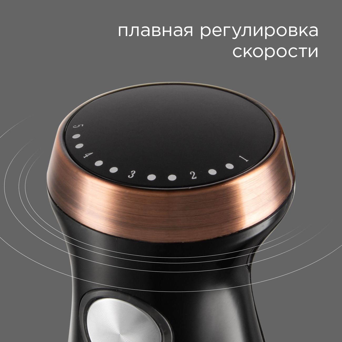 В верхнюю часть ручки встроен кольцевой переключатель, позволяющий производить плавную регулировку скорости. Для активации высокомощного турборежима держите нажатой соответствующую кнопку на корпусе.