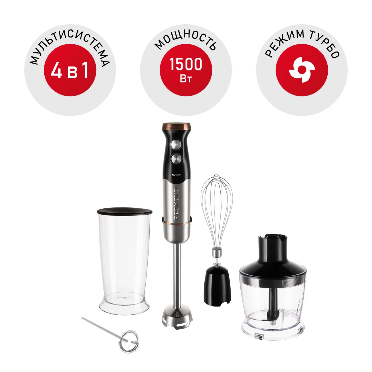 Блендер Redmond RHB-CB2986 станет для вас отличным решением, если вы любите вкусно готовить, но хотите тратить на это меньше времени. Модель входит в премиальную линейку Chrome and Bronze, поэтому будет долго радовать своим широким функционалом и стильным дизайном.