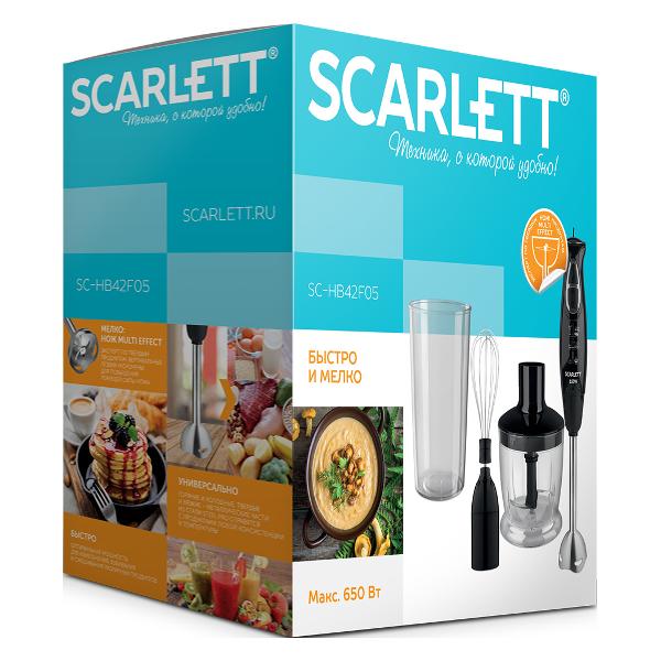 Погружной блендер Scarlett SC-HB42F05 мощностью 650 Вт используется во время приготовления жидкого теста, детского питания, крема, смузи и взбивания яиц. Устройство оснащено двумя скоростными режимами. В наборе поставляется блендер, венчик, измельчитель и мерный стакан. Модель оснащена функцией шумоподавления во время работы и защитой от брызг.