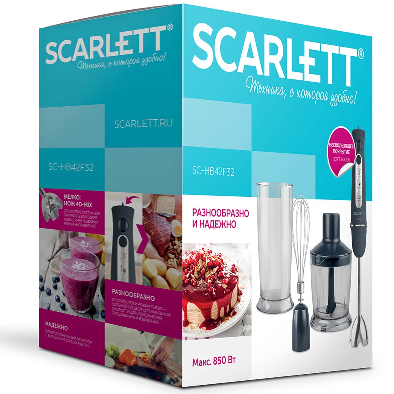 Погружной блендер Scarlett SC-HB42F32 – устройство «3-в-1», предназначенное для измельчения, смешивания и взбивания. С его помощью можно готовить пюре, кремы, соусы, а 9 скоростей работы позволяют выбрать оптимальный режим для решения любой задачи, которая перед вами встанет. Функция «Турбо» пригодится, если потребуется достичь максимальной мощности.