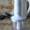 Scarlett SC-HB42F84 — погружной блендер с мотором 850 Вт. К нему прилагаются две насадки: венчик для взбивания и измельчитель с чашей 500 мл. Тип управления — кнопочный/электронный, можно выбрать один из двух уровней скорости или режим «Турбо».