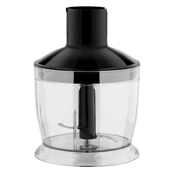 В комплектацию входят мини-измельчитель емкостью 600 мл, венчик, мерный стаканчик объемом 600 мл, насадка-блендер, насадка для приготовления пюре. Погружная часть изготовлена из нержавеющей стали Steel Pro. Съемные элементы блендера можно мыть в посудомоечной машине. Длина электрошнура — 1,2 м. Управление моделью осуществляется с помощью кнопок в верхней части корпуса.