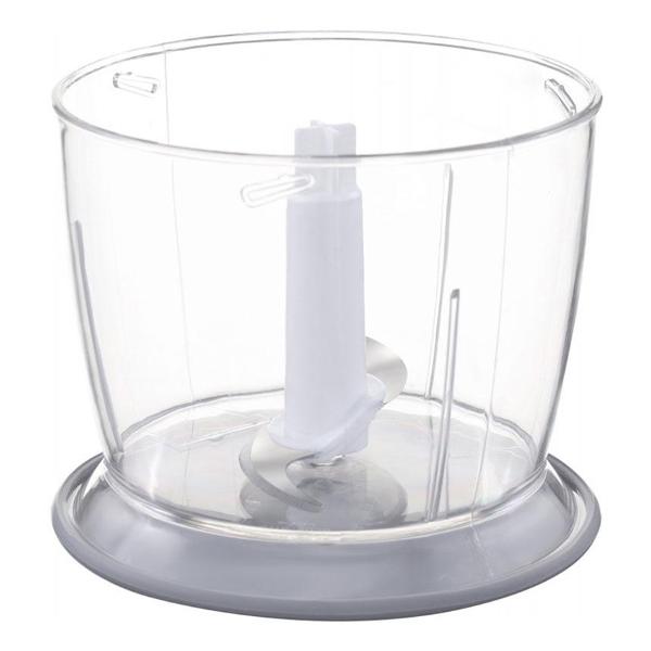 В комплекте с блендером поставляются погружная насадка, венчик и измельчитель объемом 600 мл. Кроме того, прилагается стакан (700 мл) с градуировкой для точного отмеривания ингредиентов. Съемные детали прибора можно мыть в посудомоечной машине.