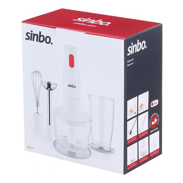 Погружной блендер Sinbo SHB-3147, белый — многофункциональный прибор мощностью 400 Вт. С его помощью можно приготовить суп-пюре и детское питание, взбить сливки и яичные белки, замесить негустое тесто, измельчить овощи, фрукты, сыр и многое другое.