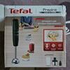 Tefal HB64F810 — погружной блендер мощностью 800 Вт. Это многофункциональное устройство, предназначенное не только для пюрирования продуктов, но и для взбивания, смешивания и измельчения. Соответствующие насадки входят в комплект. Также прилагается мерный стакан (800 мл). У этой модели 20 скоростей, регулятор находится в торце ручки. Она прорезинена и не скользит в руке. Имеется режим «Турбо» — максимальная мощность для получения особенно воздушной текстуры смеси. Присутствует функция плавного запуска мотора и система защиты от перегрева. Лезвия Powelix и рабочие части насадок выполнены из высококачественной нержавеющей стали. Они прикрыты куполом, предотвращающим разбрызгивание ингредиентов. Прочие элементы — из пищевого пластика. Вес прибора — 1,2 кг. Габариты — 40х7х7 см.