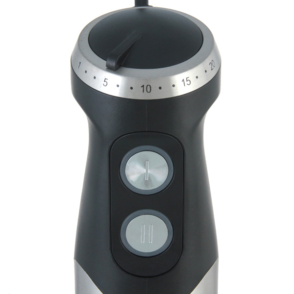 Корпус сделан из современного, эстетичного пластика и металла, которые легко мыть. Все съёмные части плотно закрепляются на ручке, при необходимости, быстро отсоединяются. Длинный сетевой шнур (1,2 м) обеспечивает мобильность блендера.