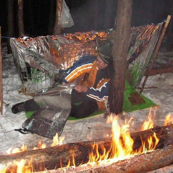 Термопокрывало отражает и удерживает тепло тела в холодную погоду. Очень помогает при спасательных работах и эвакуации пострадавших.