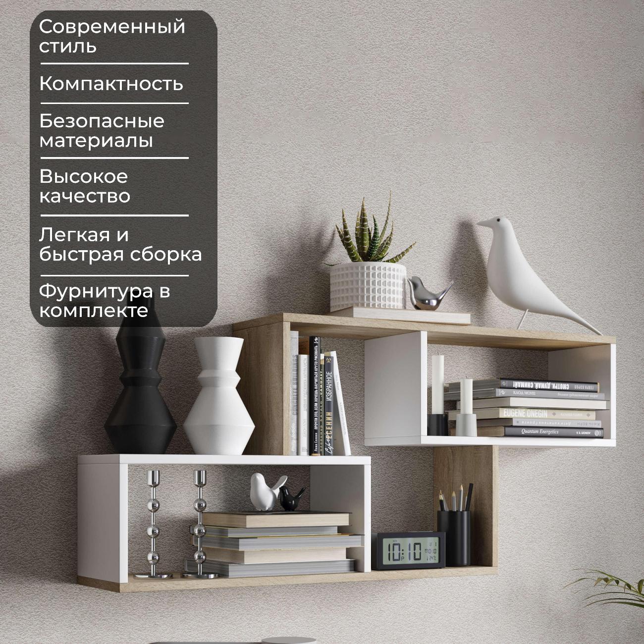 Стильная полка представленная в универсальном дизайне и расцветке, предназначенная для книг и других ассексессуаров. Подойдет для любых помещений: малогабаритных квартир и больших апартаментов. Полка универсальная и ее можно использовать на кухне для специй или посуды, в гостиной и спальне в качестве книжной полки, в кабинете для хранения документов или школьных принадлежностей. Полка изготовлена из прочного ЛДСП высокого качества. Полочка поможет вам организовать рабочее пространство и позволит хранить нужные вещи в быстром доступе. Все отверстия данной модели мебели сделаны на производстве, поставляется в разобранном виде, вся фурнитура и инструкция идет в комплекте. Книжная полка имеет быструю и легкую сборку.