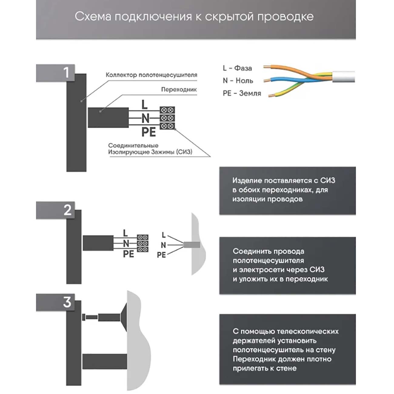 Контур изготовлен из нержавеющей стали — материала с высокой прочностью к механическому воздействию и коррозии. Полированная поверхность практически не тускнеет. Установка прибора выполняется непосредственно на стену. Размеры — 600 х 525 х 220 мм, межосевое расстояние — 500 мм, вес всей конструкции — 2,9 кг.