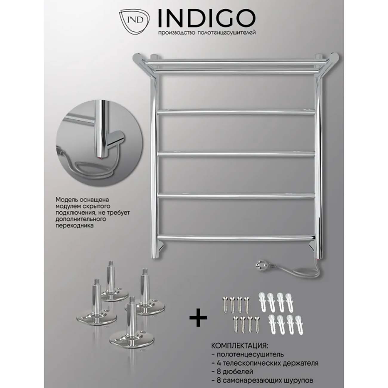 Электрический полотенцесушитель Indigo LCAE60-50PR отличается быстрым и эффективным нагревом за счет специального кабеля в прочной изоляции. Выполнен в форме лесенки с одной полкой и четырьмя перекладинами. Ввод в эксплуатацию упрощен универсальным подключением — через прямой провод, который можно переставить на нужную сторону. Возможно и скрытое подключение без переходника.