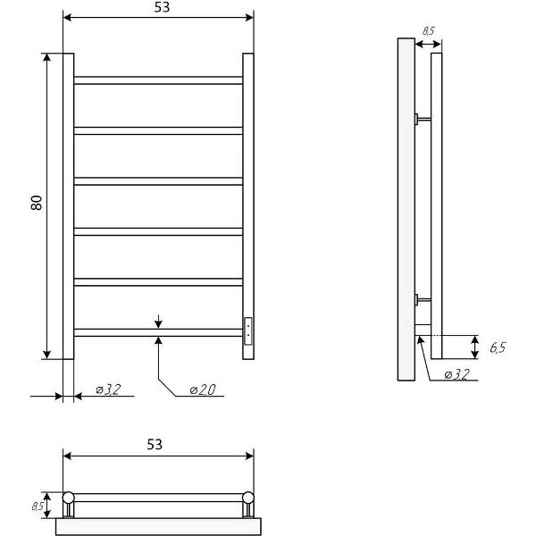 Электрический полотенцесушитель Vimarr 520NEO0458102 представляет собой конструкцию в форме лесенки из шести перекладин. Нержавеющая сталь, из которой выполнена данная модель, отличается своей устойчивостью к появлению коррозии и прочим внешним повреждениям. Теплоотдача устройства достигает показателя 64 кВт. Для электропитания прибор оснащен проводом с вилкой. Габаритные размеры данной модели — 800х530х85 мм, расстояние между осями — 50 см. Устройство полностью укомплектовано и готово к установке и эксплуатации.
