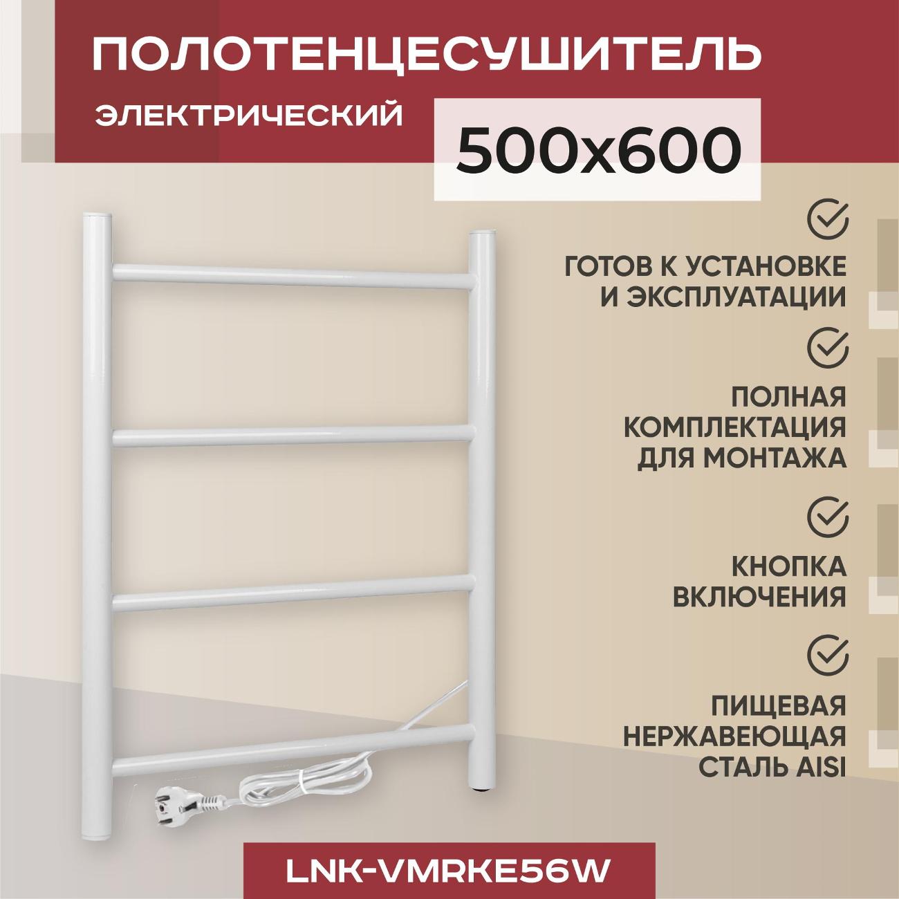 Электрический полотенцесушитель Vimarr LNK-VMRKe56W белого цвета с шестью перекладинами работает от сети. Мощность прибора — 64 Вт. Теплоотдача — 85 QBт. Устройство идет в полной комплектации и полностью готово к установке. Способ подключения — с помощью электропровода с вилкой. Габариты модели — 60х50х5,7 см. Вес изделия — 3,41 кг. Корпус сделан из стали AISI, устойчивой к образованию коррозии. Диаметр труб — 3,2 см. Длина кабеля — 1,7 м. Способ монтажа — настенный, с помощью четырех креплений.