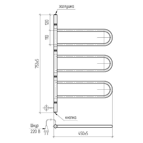 Электрический полотенцесушитель Vimarr PSNkVMRKe4575W произведен в России. Модель Е-образная формы включает шесть перекладин. Представлена в полной комплектации и готова к установке и эксплуатации. Потребляемая мощность составляет 64 Вт, теплоотдача — 64 кВт. Подключение осуществляется через электропровод с вилкой. Присутствует поворотный механизм. Изделие изготовлено из нержавеющей стали. Цвет — белый. Габариты — 753х450х30 мм, межосевое расстояние — 50 см. Общий вес составляет 6 кг.