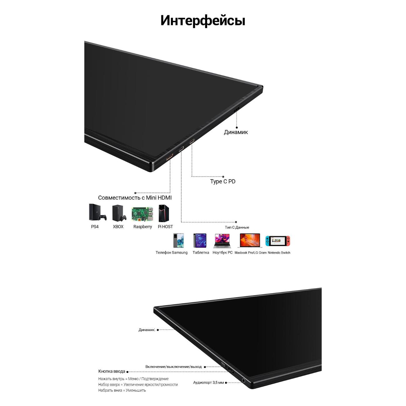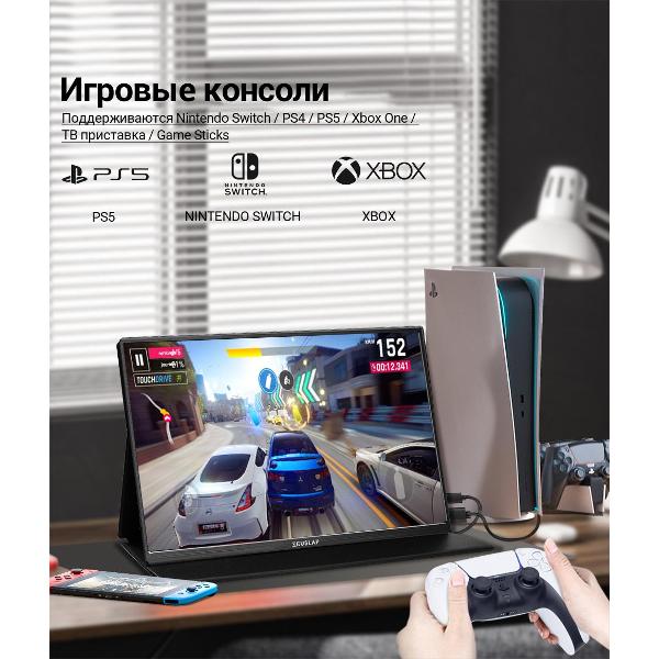 Отличный портативный монитор! Работает от розетки, от ноутбука или повербанка, когда в дороге. Главное, чтобы повербанк был достаточно мощным. Цвета яркие и насыщенные, картинка классная, даже лучше, чем я ожидал от портативного монитора! Подключается очень просто: втыкаешь USB-C в адаптер или повербанк (или ноутбук), а остальные кабели в нужный вход. Отлично работает с Xbox, ноутбуком, Nintendo Switch и PS5. Плюс, он немного больше, чем стандартные 15,6-дюймовые экраны.