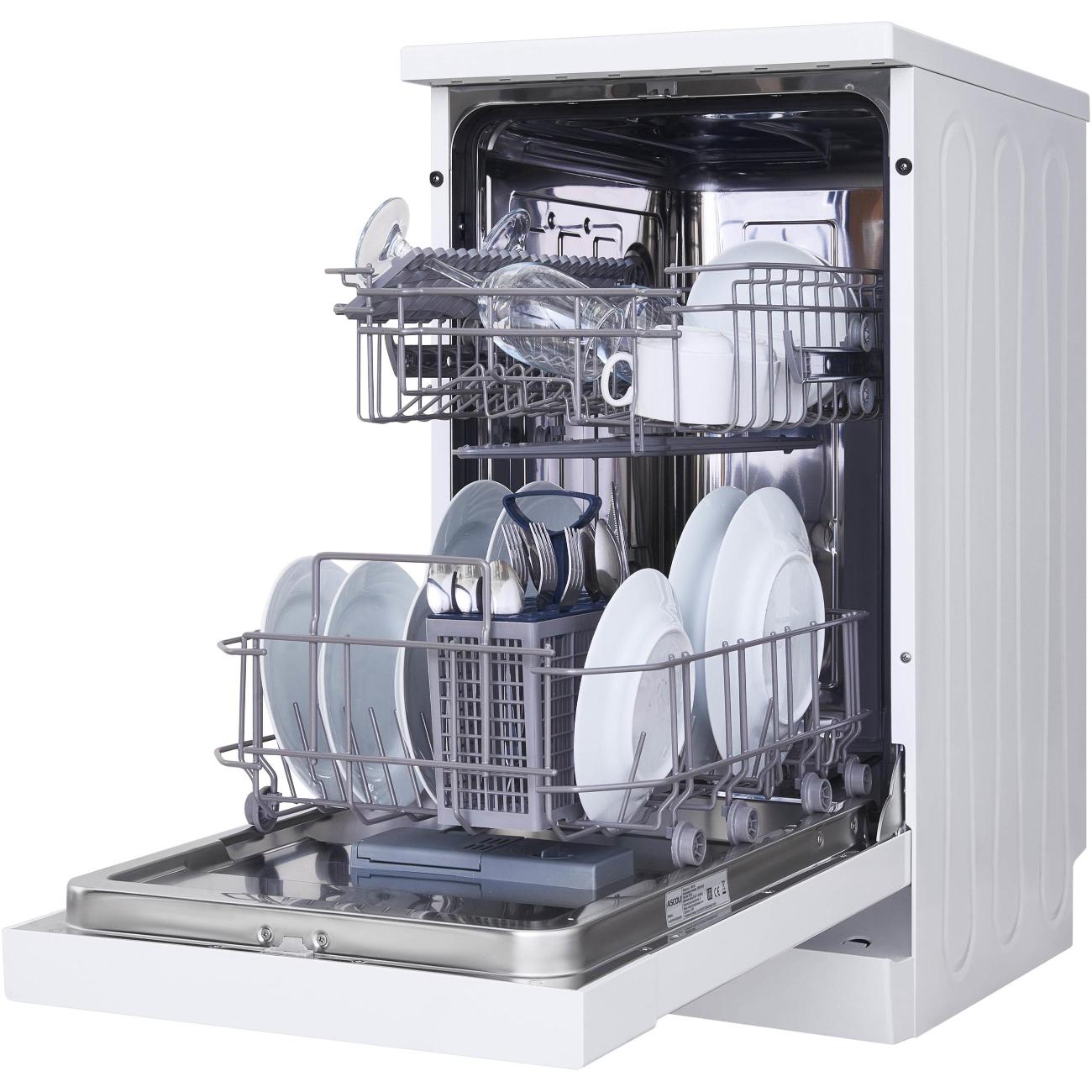 Посудомоечная машина 60 см Ascoli A60DWFSD1230W — отдельно стоящая узкая модель с возможностью встраивания, максимально вмещает до 12 комплектов. Выполняется конденсационная сушка. Работу обеспечивает стандартный мотор с уровнем шума до 49 дБ. Устройство принадлежит к классу высокой энергоэффективности (А). Энергопотребление за цикл — 0,9 кВт*ч, расход воды составляет 10 л. Управление выполняется на открытой панели с цифровым дисплеем.