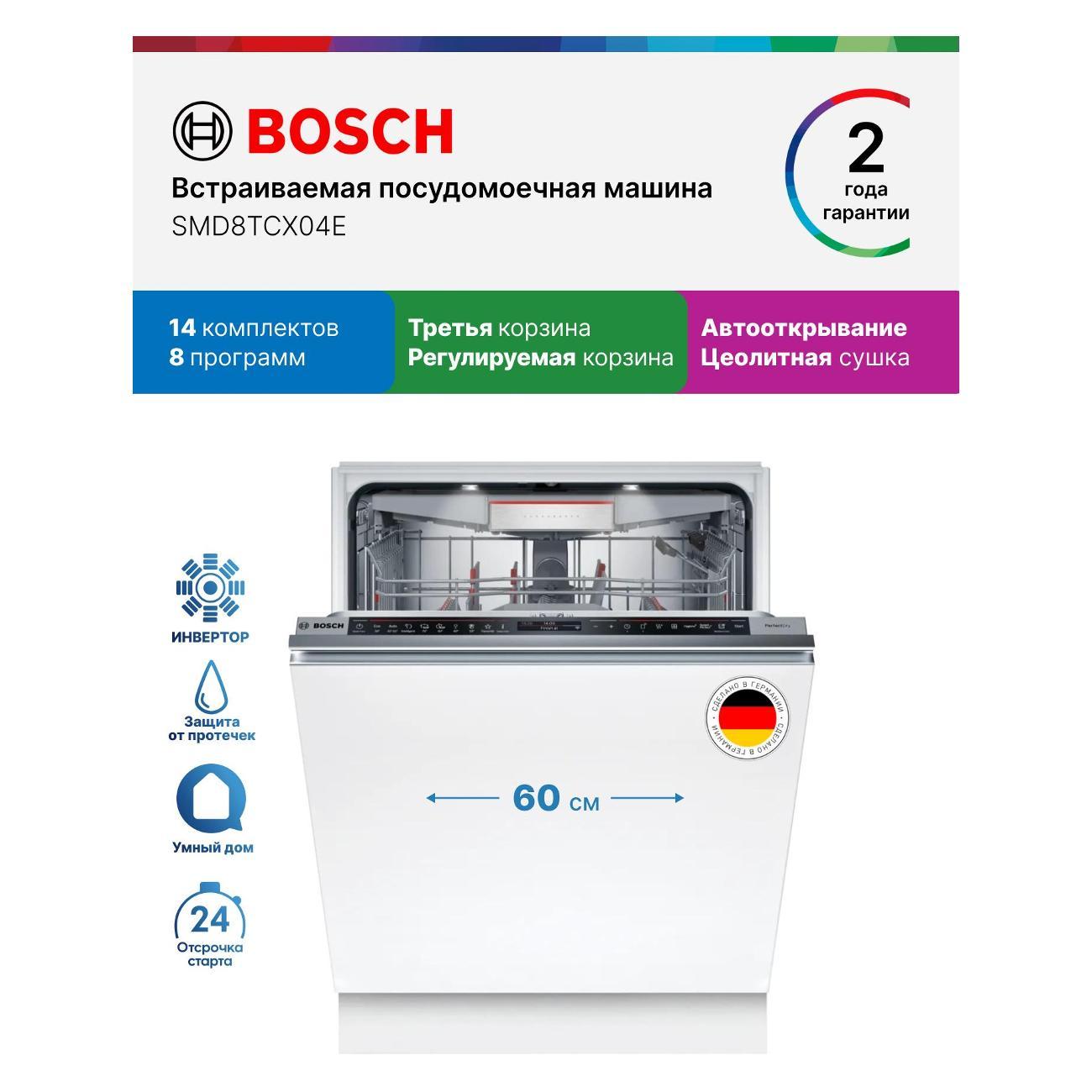 Вы можете купить Посудомоечная машина Bosch SMD8TCX04E в магазинах М.Видео по доступной цене. Посудомоечная машина Bosch SMD8TCX04E: подробное описание, фото и отзывы реальных покупателей, характеристики, возможность скачать инструкции и подобрать аксессуары.