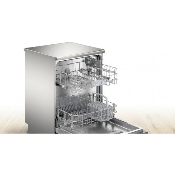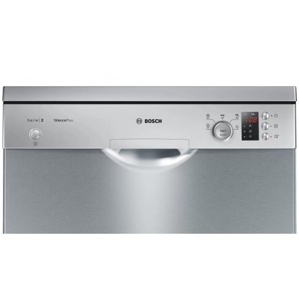 Посудомоечная машина Bosch SMS25AI05E шириной 60 см оснащена пятью программами мытья, в том числе экономичным и интенсивным режимами. Потребление воды за один цикл не превышает 9,5 л, машина вмещает в себя 12 комплектов посуды. Уровень шума — 48 дБ, конденсационный тип сушки. Машину можно загрузить половиной количества посуды, а также отсрочить запуск на удобное время (до 24 часов).