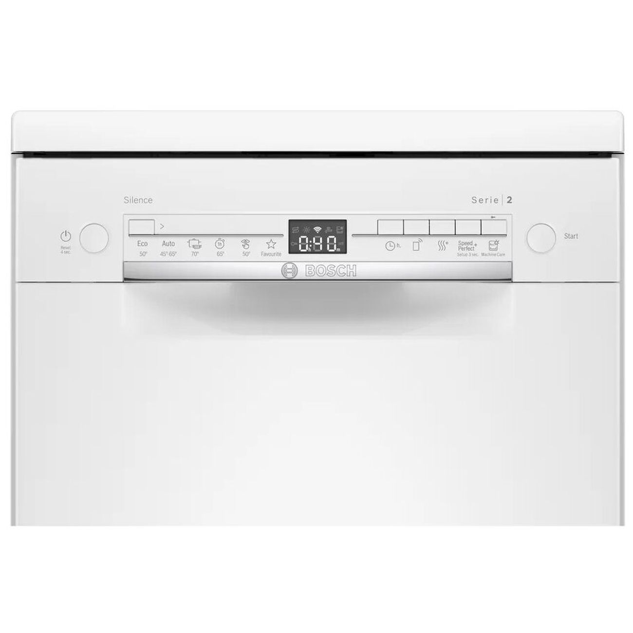 Посудомоечная машина 45 см Bosch SPS2XMW04E не скользит по напольному покрытию благодаря ножкам с прорезиненной поверхностью. Модель вмещает до 10 комплектов посуды. Корзину можно регулировать по высоте, в зависимости от размещаемых внутри предметов.