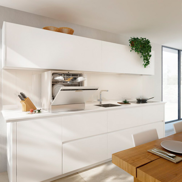 Как всегда, сначала купил кухню, а уже потом супруга попросила посудомойку) пришлось придумывать... пристраивать еще один корпус кухни, за бетонным вентшкафом, благо размер кухни позволяет. Одно НО, глубина шкафа 40 см, поэтому мог себе позволить вынос только 10-15 см, чтобы все эстетично смотрелось, не выпирало. Нашел именно этот вариант посудомойки серебристого цвета. Благо кухня в тех же тонах. Получилось как встроенная, единственное, видна панель управления снаружи дверцы. Сама посудомойка работает идеально. Очень порадовала вместительность. На семью из 4-х человек самое то! Отмывает идеально на режиме ECO 45 минут. Правда, если присохшая пища, надо ставить на самый долгий режим, но такое бывает редко. Таблетки перепробовал все, что представлены на рынке... Заверяю официально, отмывают ОДИНАКОВО. Все 7 в 1; 5 в 1 и содержат соль. Ничего дополнительно добавлять не надо, хоть и предусмотрены емкости. Фото прикрепить не удалось(