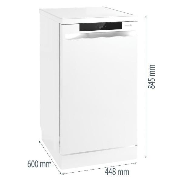 Посудомоечная машина Gorenje GS541D10W — узкая модель шириной 44,8 см, вмещающая до 11 комплектов посуды. Устройство адаптирует расход ресурсов под объем загрузки, гарантируя качественную очистку без лишних трат.