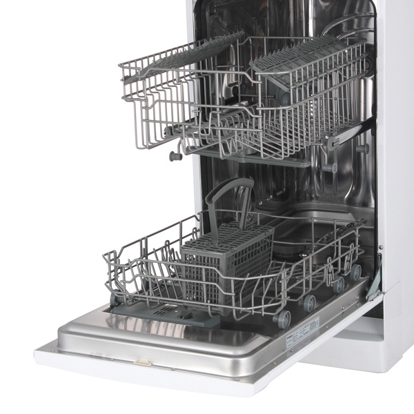 Через полтора года стала отклеиваться внутренняя боковая резинка, и загрузить посуду становилось все труднее. Верхняя секция достаточно низкая, бокалы в ней нельзя помыть, приходилось ставить в нижнюю секцию, и не все бокалы выдержали такую «мойку». Стойки под тарелки стали падать буквально через месяц. Короткая программа промывает посуду плохо. Длинная моет очень долго. И это базовые функции: о предварительном споласкивании, отображении времени мытья или отсрочке запуска даже не говорим, их просто нет.