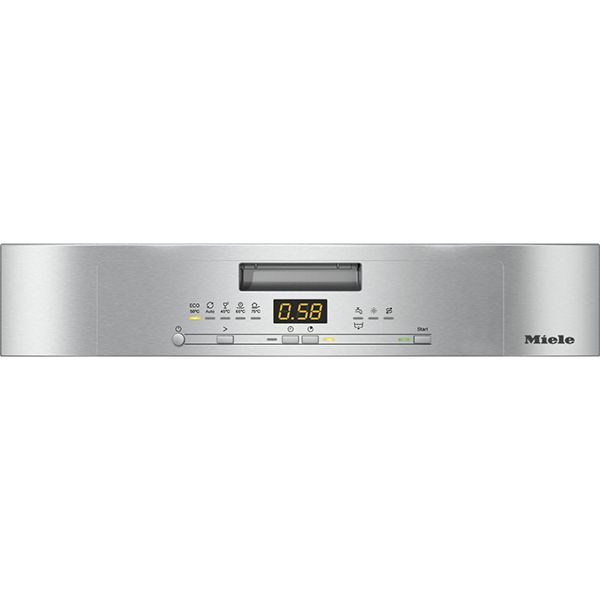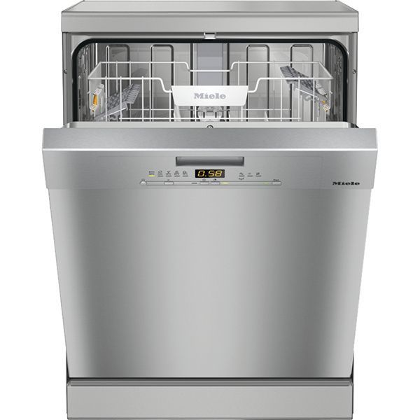 Miele G5000 SC CLST Active, серебристая/нержавеющая сталь, рассчитана на 15 комплектов посуды. Габариты модели составляют 84,5х60х60 см, вес — 54,5 кг.