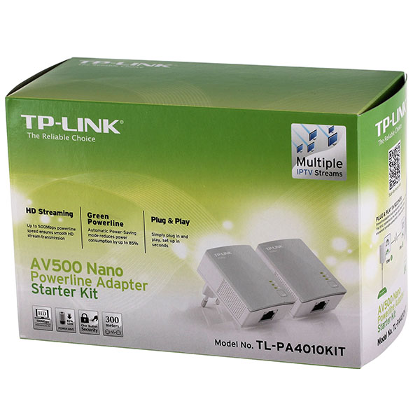 Комплект Nano адаптеров Powerline TL-PA4010KIT превратит вашу электропроводку в высокоскоростную сеть без необходимости прокладки дополнительного кабеля. Настройка не требуется, просто подключите адаптер к электророзетке, и ваша локальная сеть создана в одно мгновение. Комплект адаптеров ТL-PA4010KIT обеспечивает передачу данных на скорости до 500 Мбит/с по электросети, что удобно для трансляции нескольких потоков HD-видео и даже 3D-видео в каждую комнату. ТL-PA4010KIT - прекрасный выбор для быстрого создания развлекательной мультимедиа-сети.