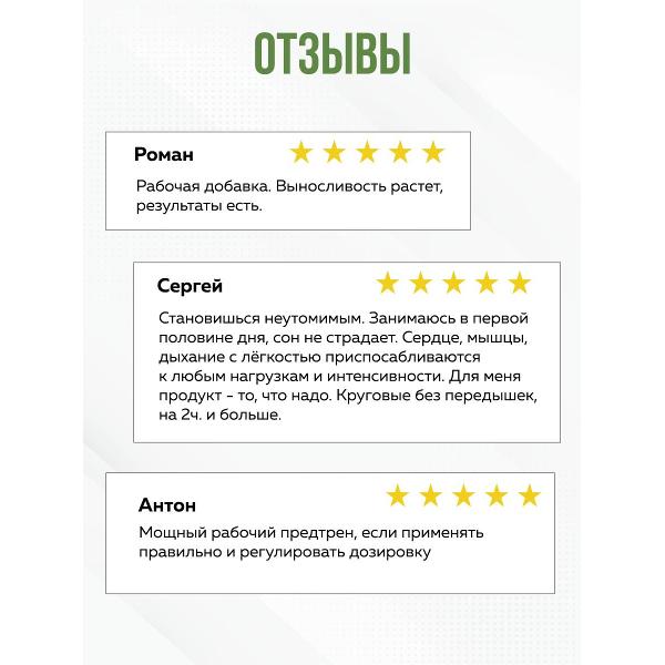 Комплекс поддерживает высокий уровень работоспособности при выполнении многоповторных подходов и спринтерских нагрузок, способствуя преодолению тренировочных пределов.
