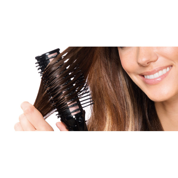 Поскольку работает эта щетка по принципу щипцов (есть нагревающая поверхность), то работать с нею нужно с уже подсушенными волосами. То есть фен она не заменит в полном смысле этого слова. Подходит для тех, кто, например, помыл голову на ночь, а утром решил придать прическе форму. Сделать ею прикорневой объем у меня не очень получается, хотя, может, я еще просто не приноровилась. Может, дело в правильно подобранном средстве для укладки.