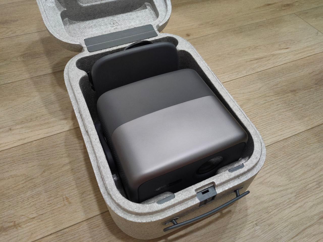 Брали в подарок свекру на юбилей. Смотрим всей семьей на даче на белой стене без экрана, качество просто супер, даже в светлое время суток не закрывая окна, картинка четкая и яркая. Ощущения, как в кинотеатре. Нравится, что и без специальных креплений и штативов, просто поставив на пол, он прекрасно проецирует ровную картинку. Упаковка-чехол удобные для хранения и перевозки.