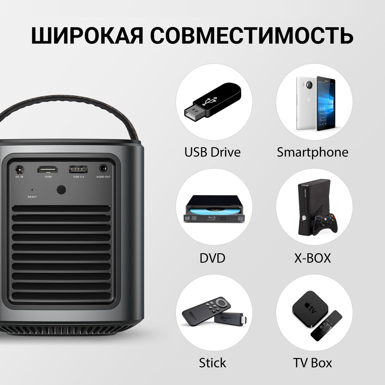 Батарейки хватает на долго. Еще ни разу не было, чтоб мы кино не досмотрели и он сел. Удобно управлять со смартфона. Есть куча всяких приложений. Выбирай и смотри. Подключать легко, без инструкции разобрался.