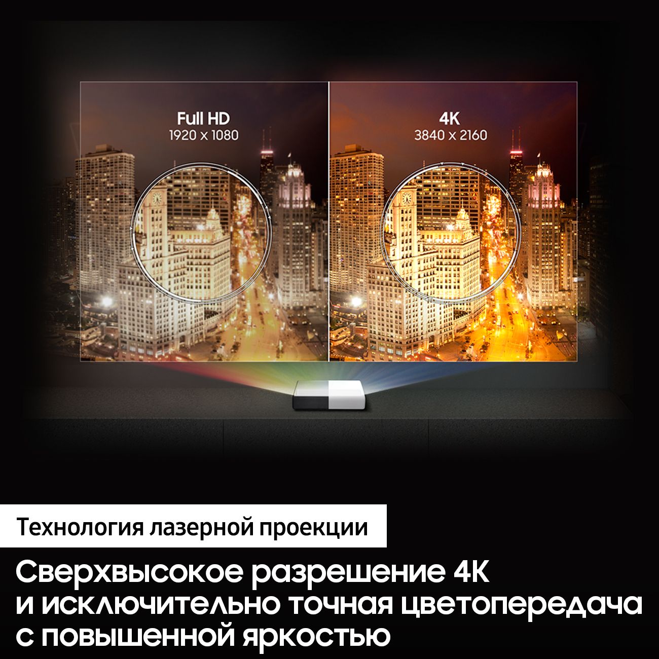 Лазерный проектор Samsung SP-LSP7T воспроизводит изображение с разрешением до 3840 х 2160 пикселей, что соответствует современному стандарту сверхвысокой чёткости 4K. Представьте, что вы в кинотеатре, и наслаждайтесь полным погружением!