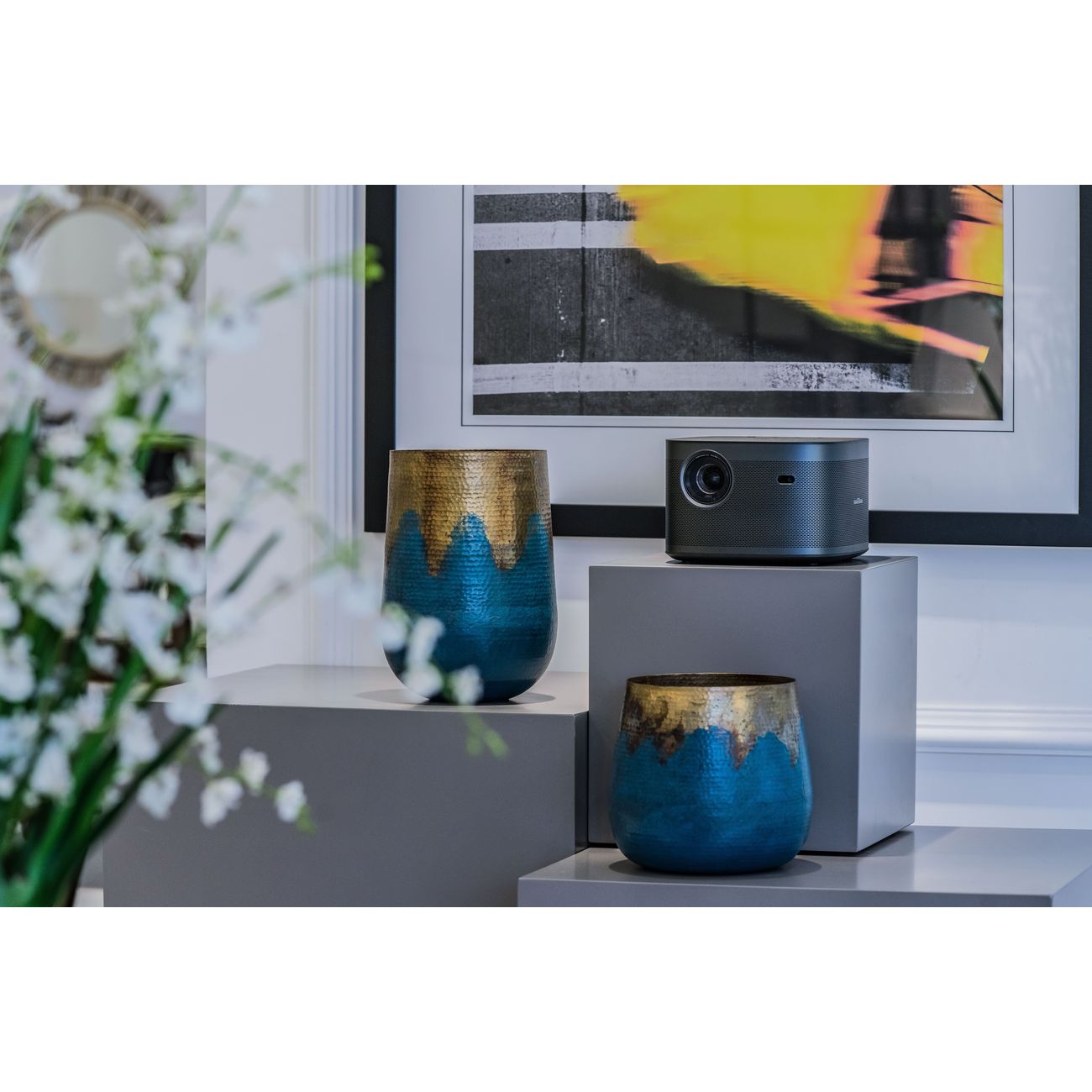 Пишу отзыв спустя два года эксплуатации. Это лучшая альтернатива любому телевизору. Берите сразу серый экран, чёрный будет чёрным и контраст хороший. Примерно год простоял на столике возле кровати, ниже уровня экрана и сбоку от него! И всё прекрасно работало, настраивать каждый раз не надо при включении, он запоминает проекцию. Потом повесили на специальное крепление, как положено, стало вообще шикарно, особенно звук, который теперь не сбоку, а сверху рассеивается и никаких дополнительных колонок не надо. Да, кстати, подключили его с бесперебойником, так как бывают скачки напряжения и отключения электроэнергии. По функционалу: все доступные приложения с гуглплей на него ставятся. Через HDMI подключается ноут. Любые блютуз наушники подключаются без проблем. Вай-фай берёт любой. Интерфейс простой, бабушка и дошкольник справятся. Личные ощущения: смотреть на нём "17мгновений весны" или "властелин колец" - ни с чем не сравнимое удовольствие! Потому что ты дома, а не в кинотеатре,где все шуршат пакетами, хрустят чипсами и треплются без конца! Интроверты оценят особенно. Ну и магия полноэкранного фильма,конечно, необъяснимая и очаровательная, которая работает только на проекторе. Просмотр хорошего фильма сделает ещё приятнее,а у плохого подсветит сразу все недостатки. Семья ни разу не пожалела о приобретении. У нас расстояние от экрана до проектора примерно 4м. Экран 2.2х1.2м (диагональ считайте сами). Пикселей с 3м не видно вообще, даже если присматриваться с идеальным зрением. Экран можно было и пошире взять, но поместился только такой в наши габариты. В общем рекомендую.