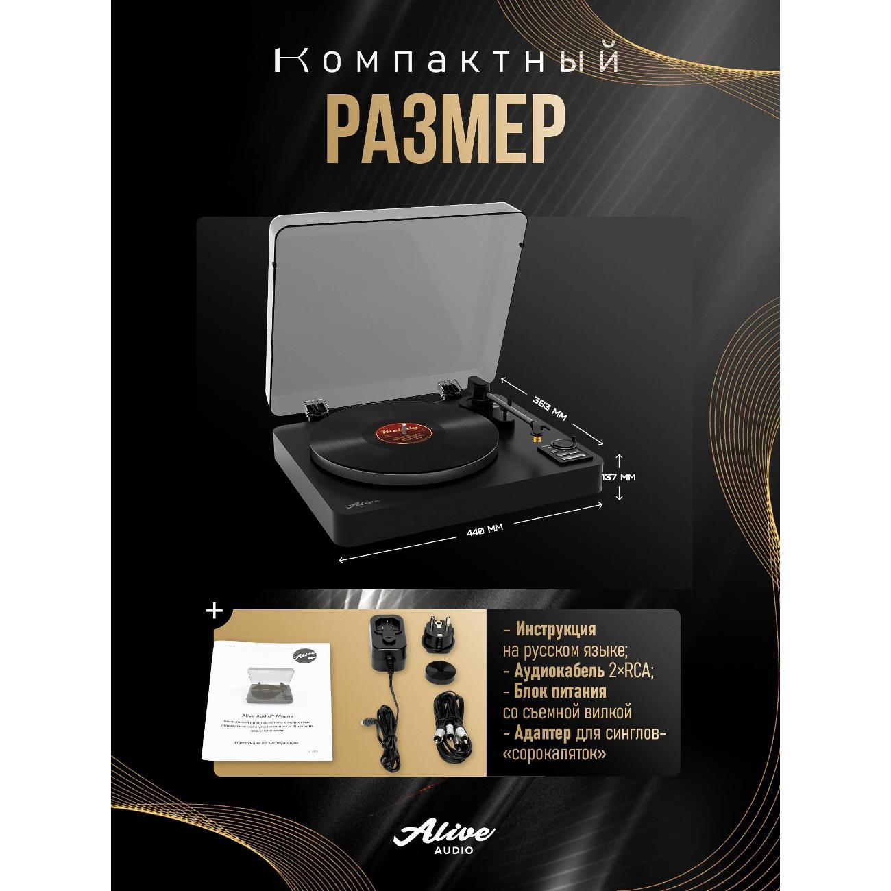 Вы можете купить Проигрыватель виниловых дисков Alive Audio MAGNA в магазинах М.Видео по доступной цене. Проигрыватель виниловых дисков Alive Audio MAGNA: подробное описание, фото и отзывы реальных покупателей, характеристики, возможность скачать инструкции и подобрать аксессуары.
